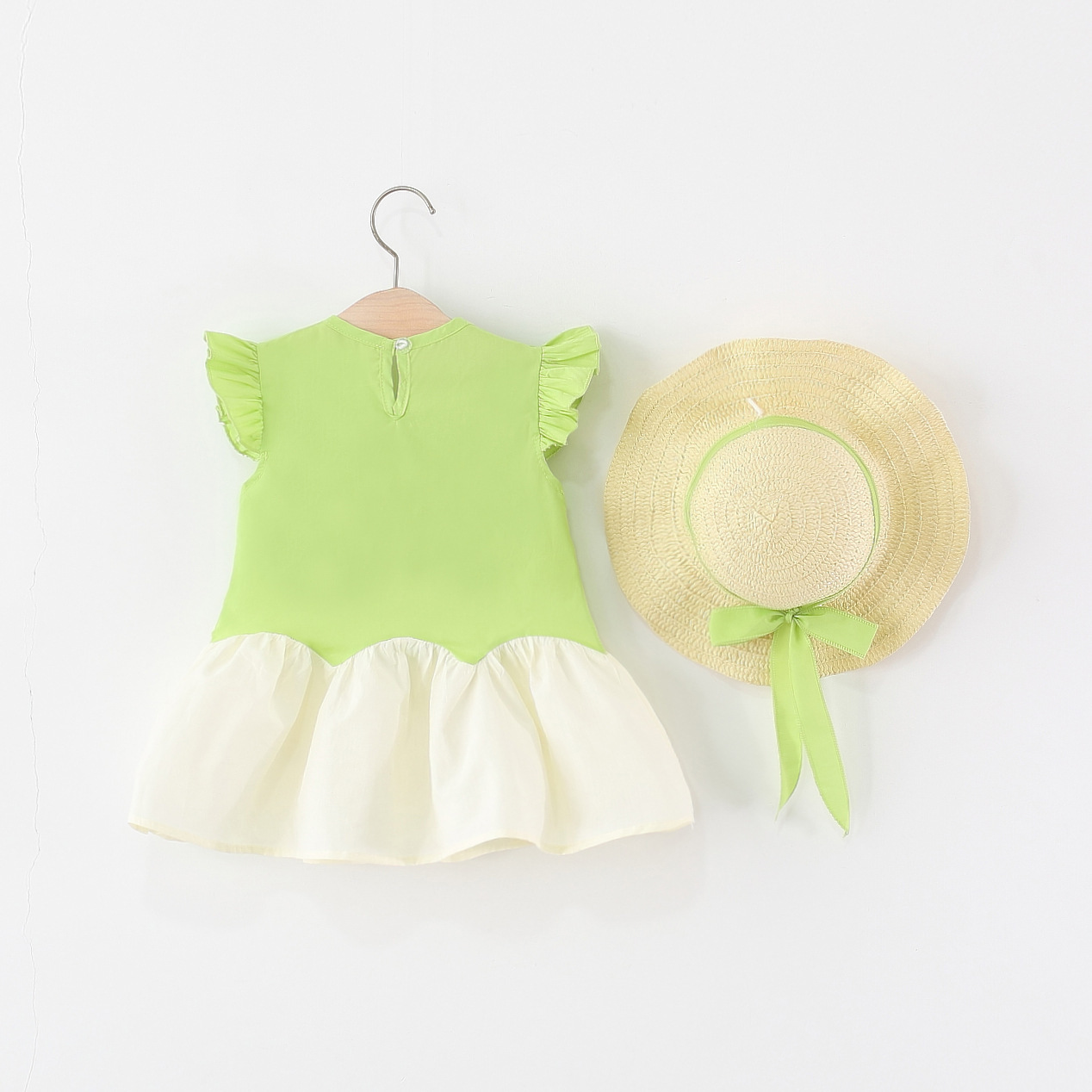 어린이 착용 2025 새로운 소녀 원피스 여름 아기 소녀 아기 꽃 면 컬러 블록 공주 치마스토어 가기