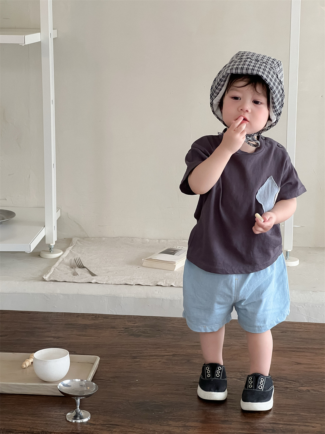 아기옷 여름 얇은 소재 2025 신상품 아동 여름옷 한국 스타일 아동복 남아 티셔츠 데님 반바지 세트스토어 가기