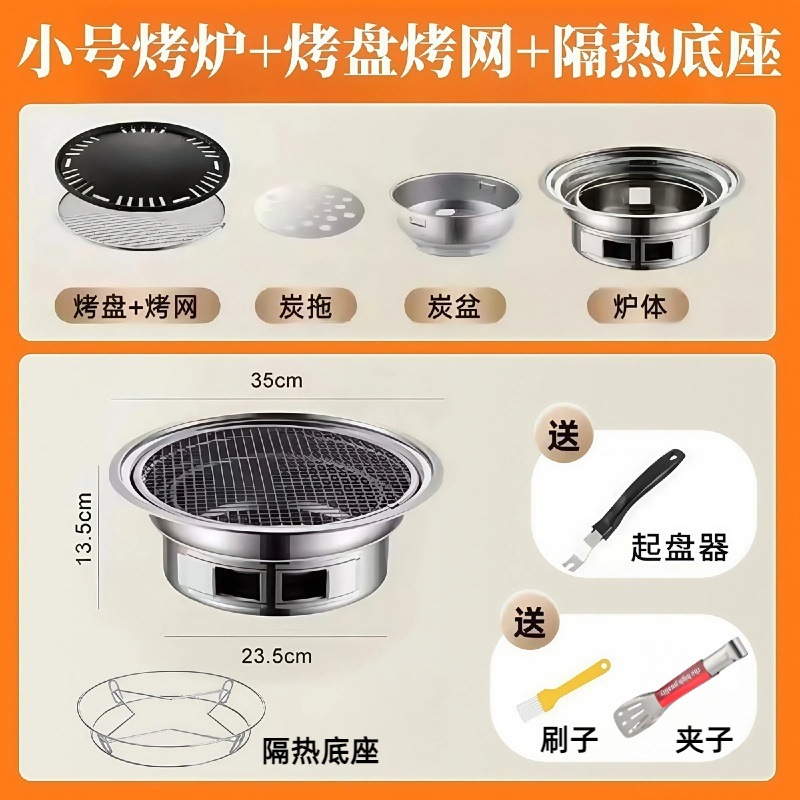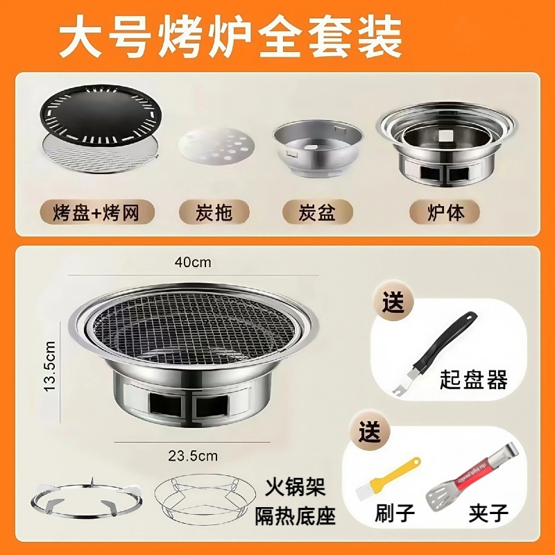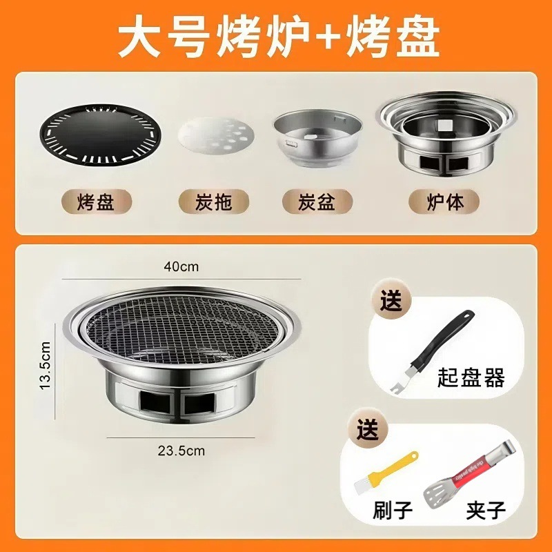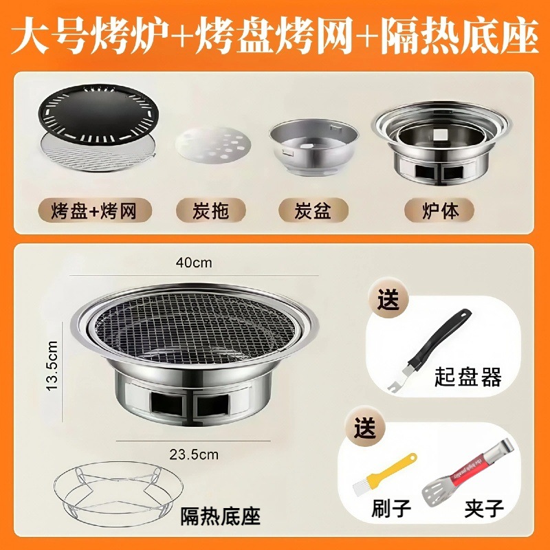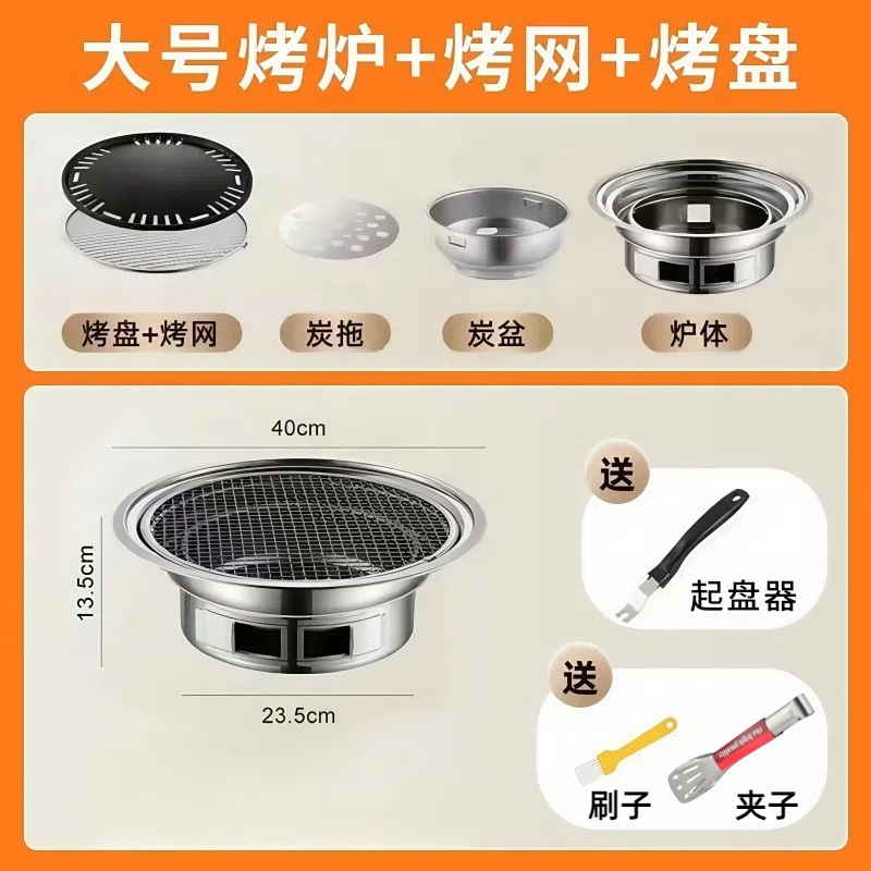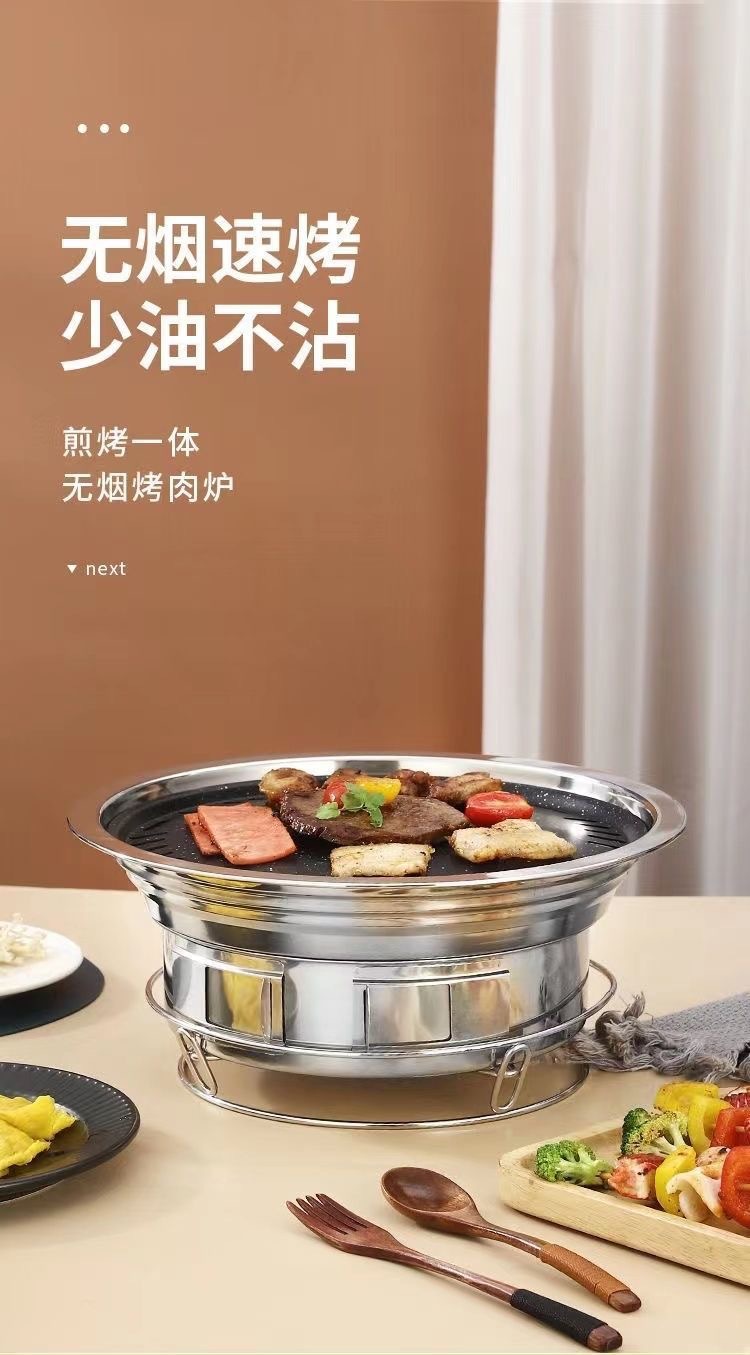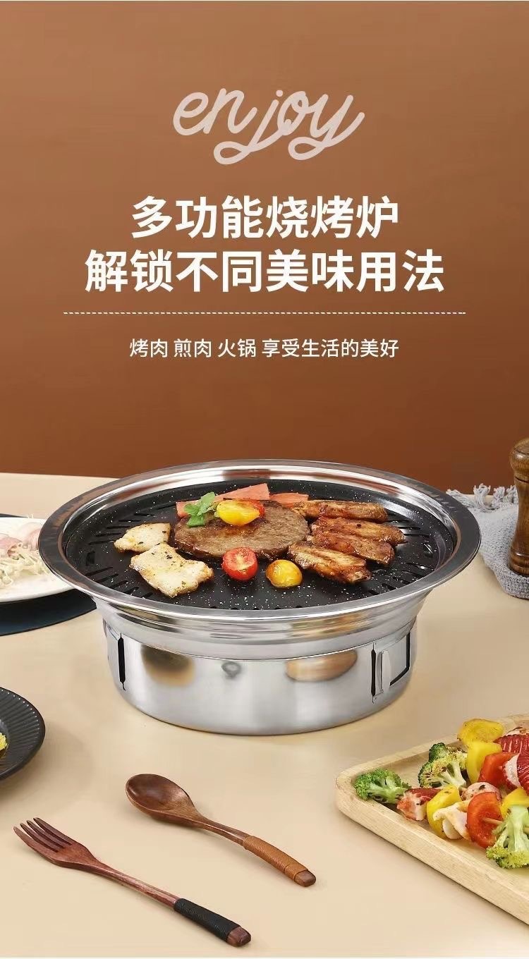 스테인리스 바베큐 그릴 가정용 및 상업용 원형 그릴 야외용 숯불 그릴 식물성 기름 친환경 오일 다기능스토어 가기
