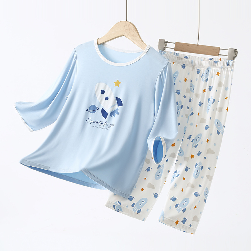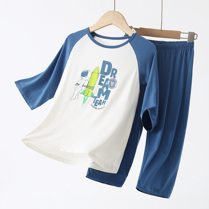 어린이 잠옷 여름 얇은 소년 집 옷 큰 소년의 에어컨 옷 클래스 A 모달 세트 제조 업체스토어 가기