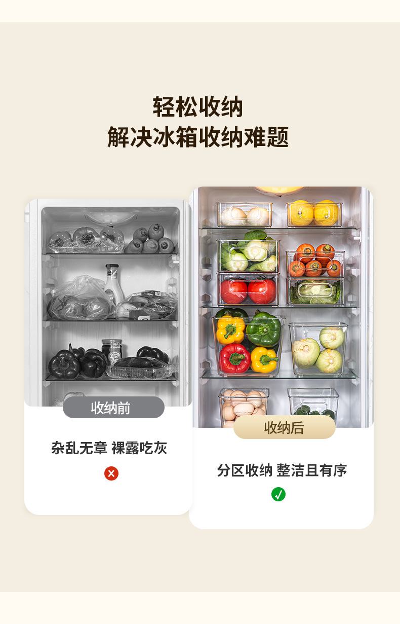 냉장고 PET 보관 상자 투명 주방 휴대용 보관 상자 스낵 바구니 홈 주방 욕실 잡화 보관 상자