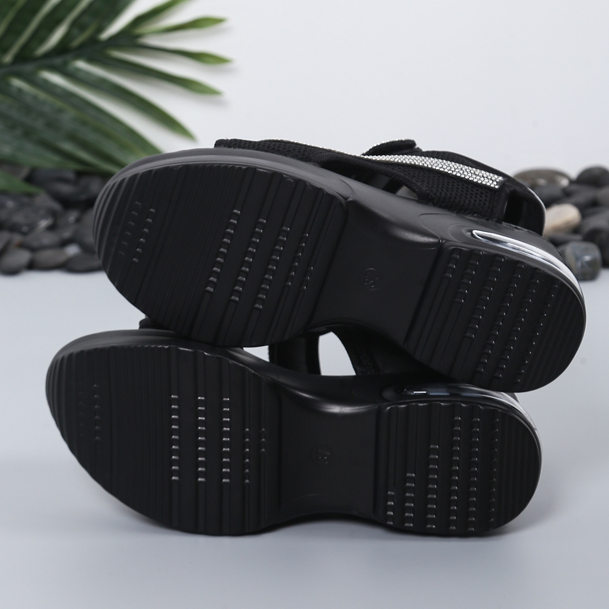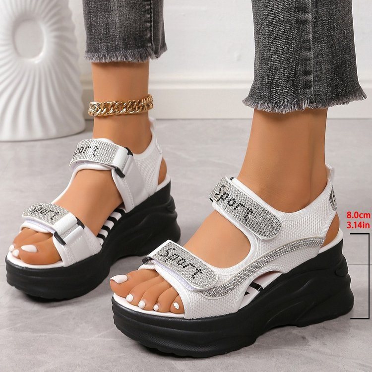 두꺼운 밑창 대외 무역 대형 스플 라이스 패션 샌들 여성의 새로운 스포츠 스타일 벨크로 라인 석 로마 샌들스토어 가기