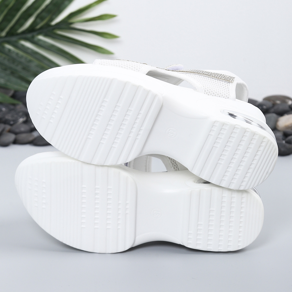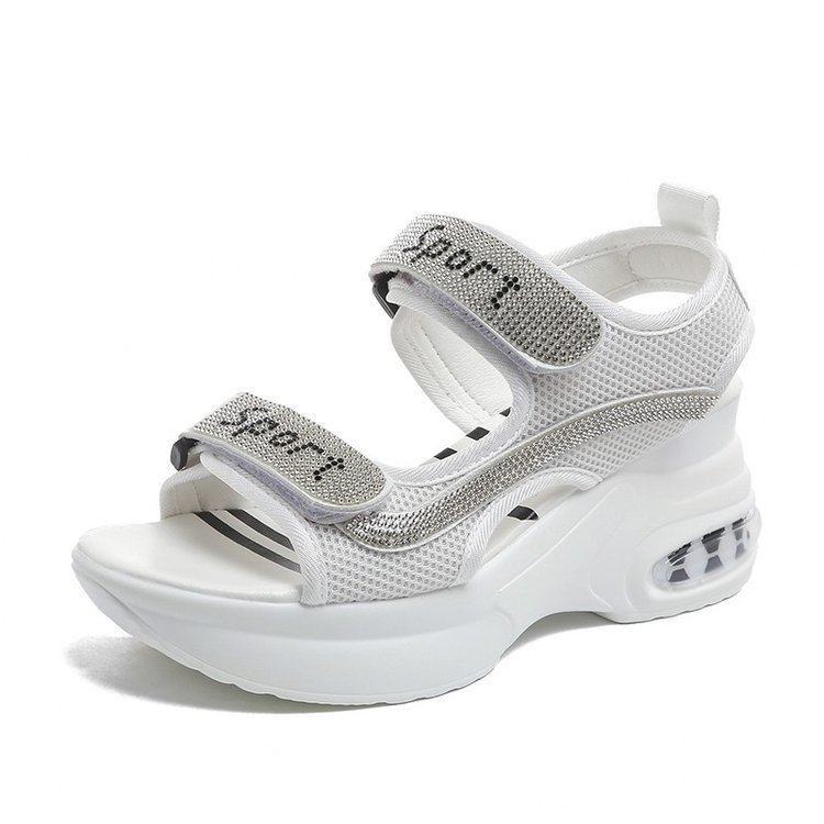 두꺼운 밑창 대외 무역 대형 스플 라이스 패션 샌들 여성의 새로운 스포츠 스타일 벨크로 라인 석 로마 샌들