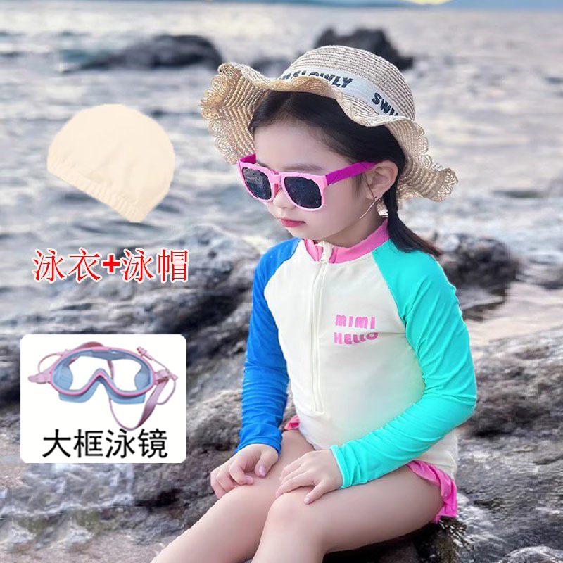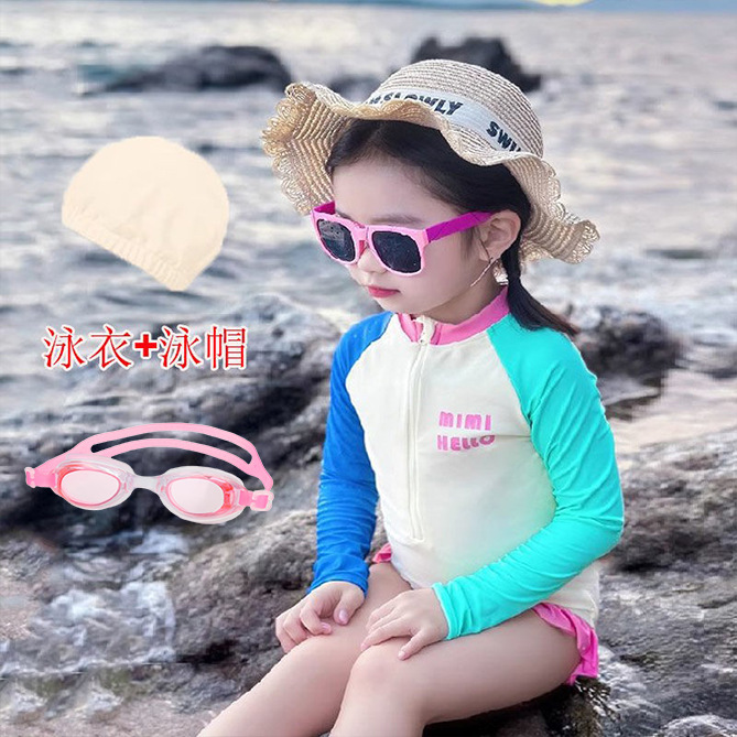 • 6047#컬러풀한 수영복 + 수영모 + 대형 프레임 수영 고글 (사진 속 선글라스 아님)
