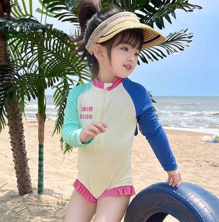 2025 여자 수영복 여름 국경 새로운 외국 스타일 소녀 도파민 원피스 수영복 휴일 어린이 조수 도매스토어 가기