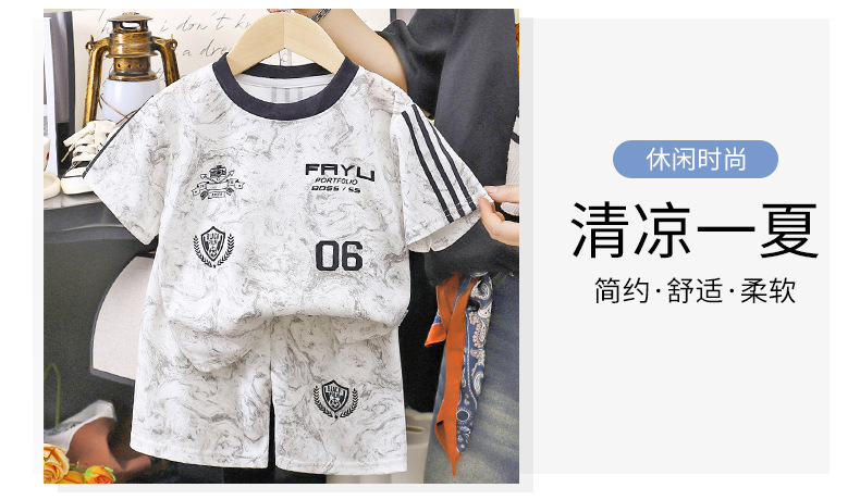 어린이 반팔 스포츠 세트 여름 새 소년 캐주얼 여름 아기 반바지 투피스 서양식 아동복스토어 가기