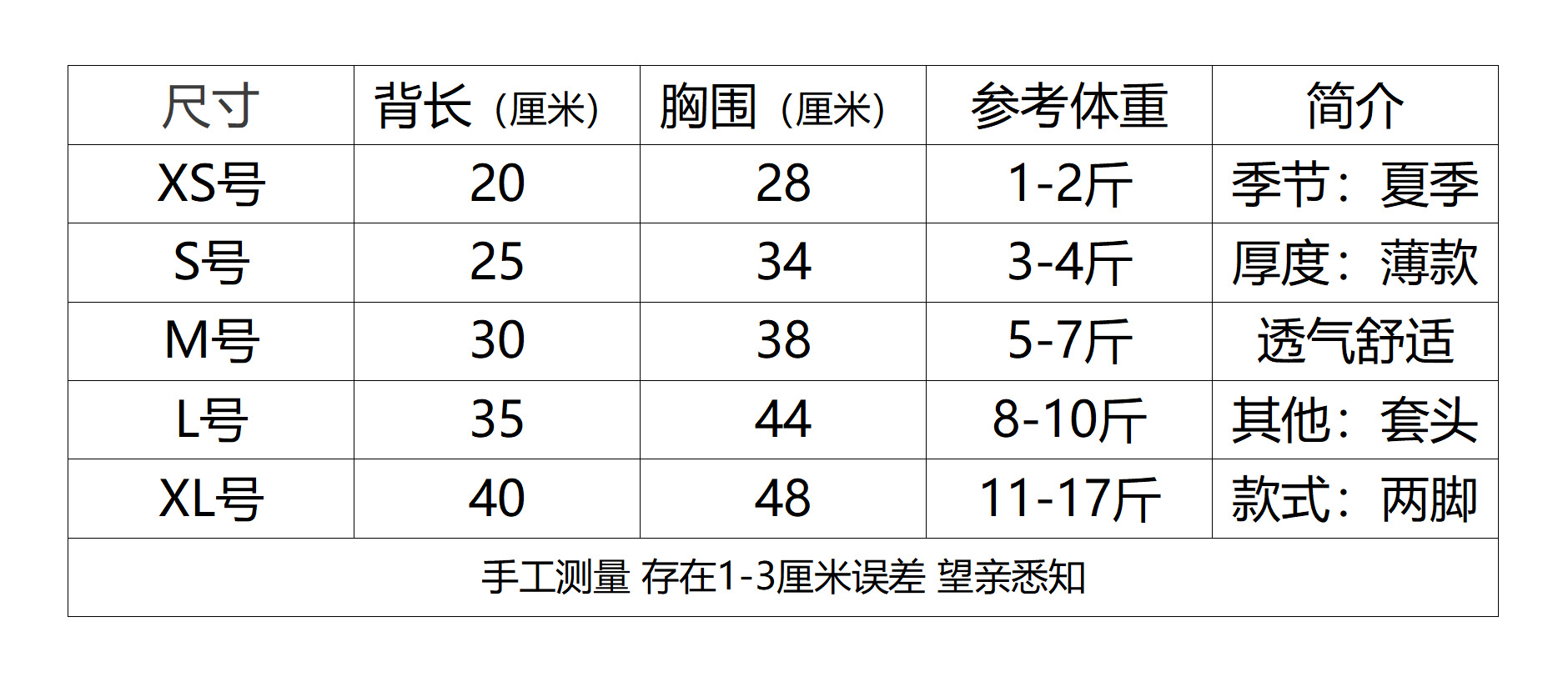 • XS 등길이 20cm (권장 0.5-1.0kg)