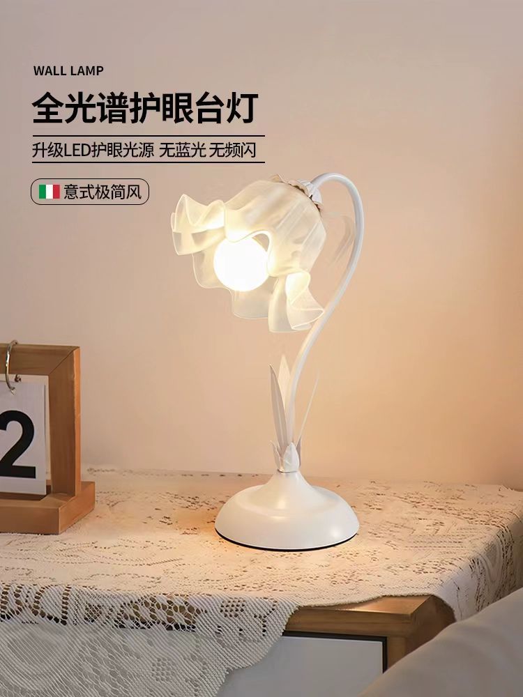 침실 머리맡 테이블 램프 인터넷 연예인 스타일 소녀 목가적 인 꽃 분위기 야간 조명 학생 학습