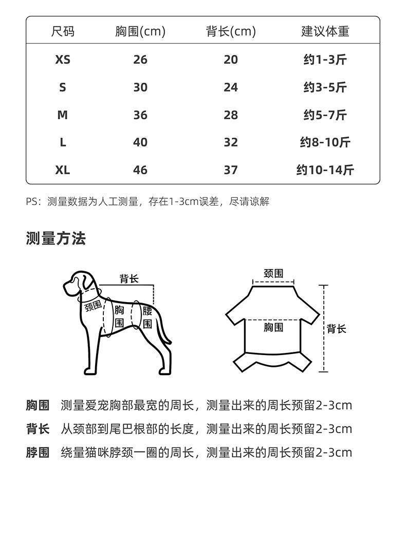• S 권장 사항 1.5-2.5kg 특정 참조 사이즈 차트