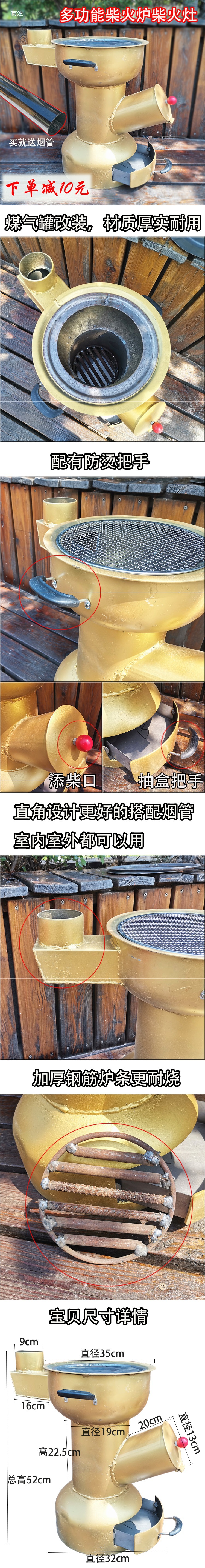 야외 농촌 두꺼운 야외 캠핑 스토브 장작 스토브 휴대용 장작 절약 에너지 절약 가정용 물 끓이기 요리 스튜 스토브