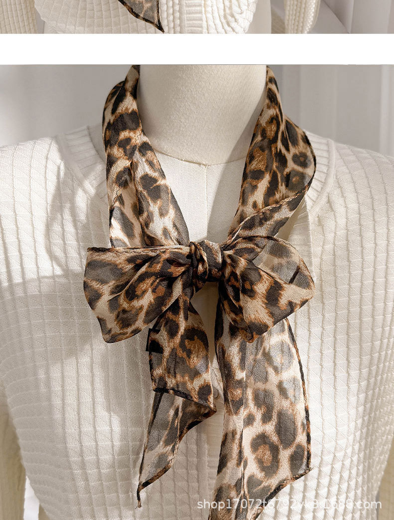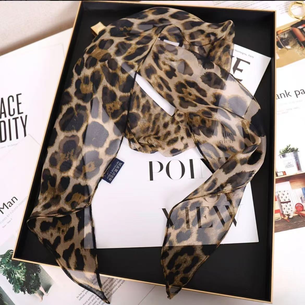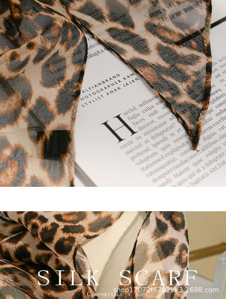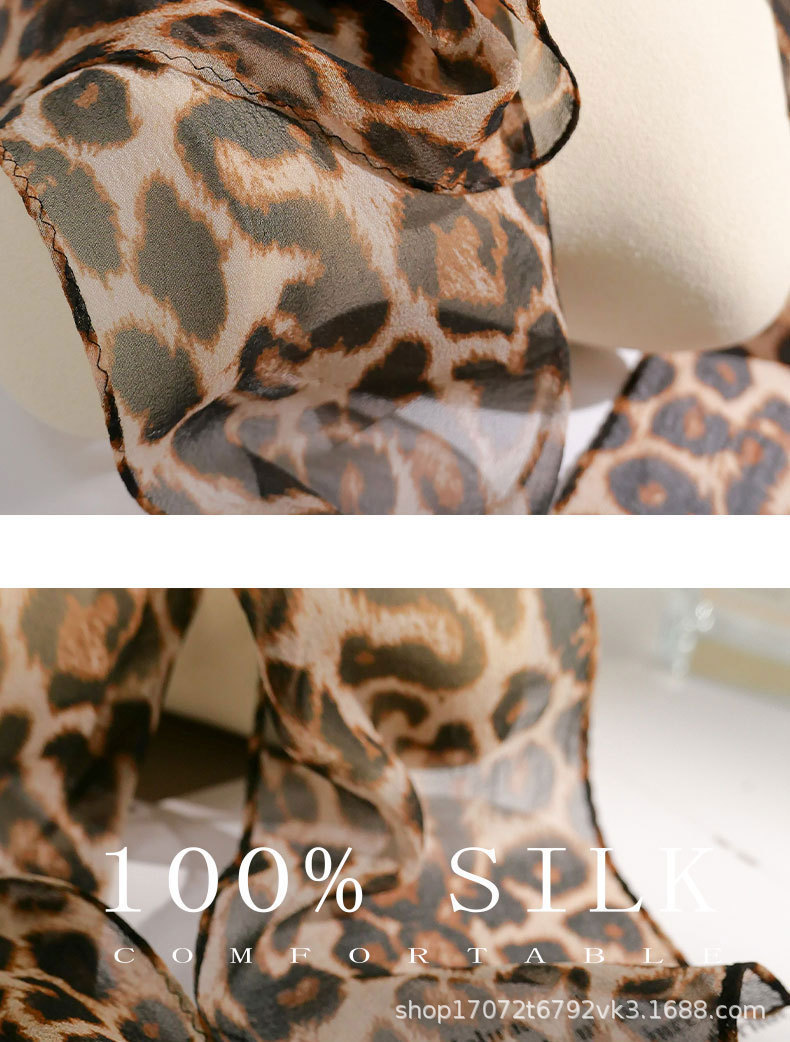 100% 뽕나무 실크 실크 유행 레오파드 톤 실크 스카프 여성 헵번 스타일 뽕나무 실크 조젯 올 매치 리본