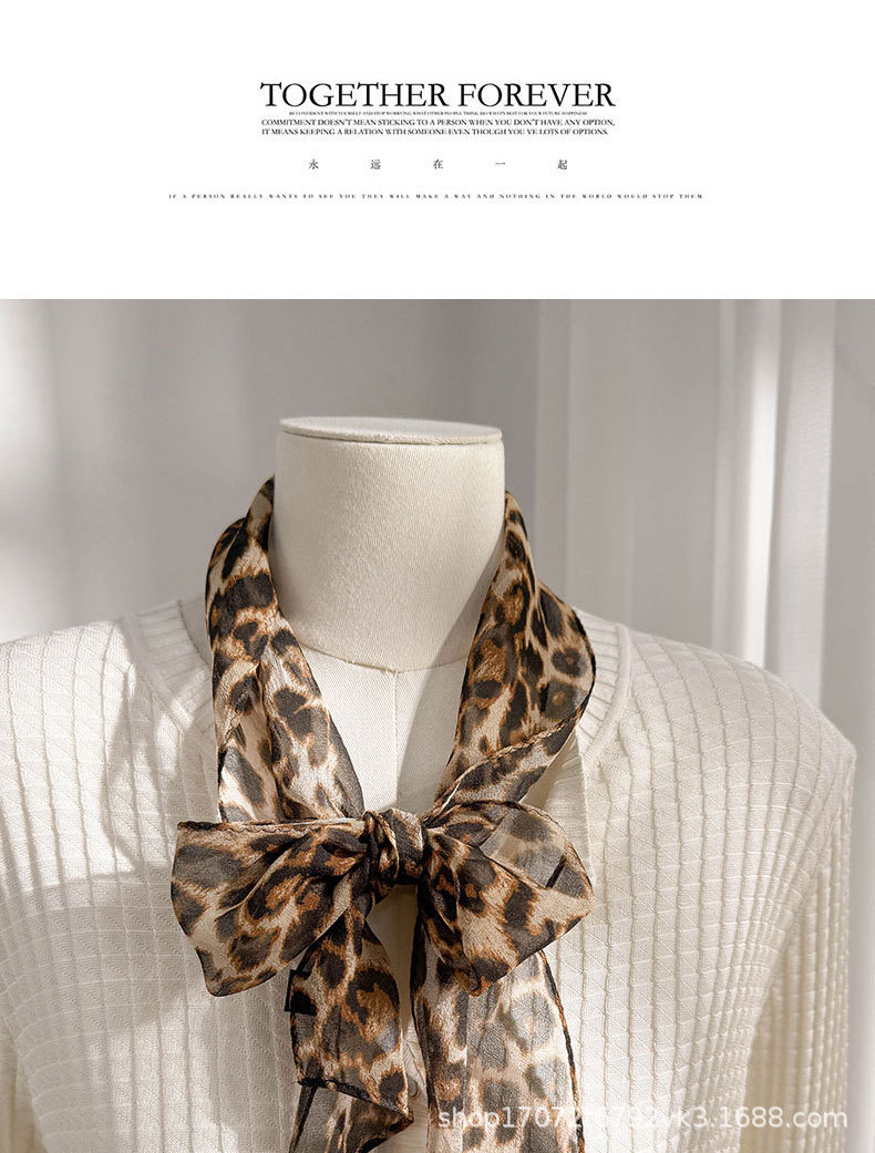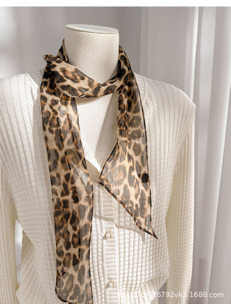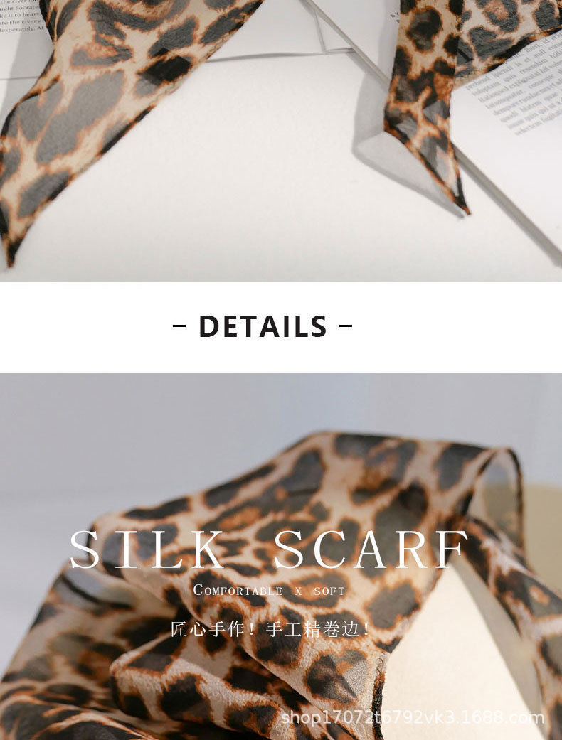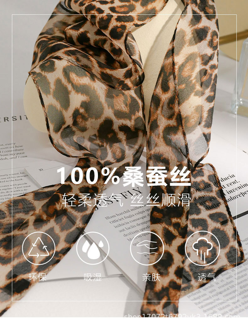 100% 뽕나무 실크 실크 유행 레오파드 톤 실크 스카프 여성 헵번 스타일 뽕나무 실크 조젯 올 매치 리본