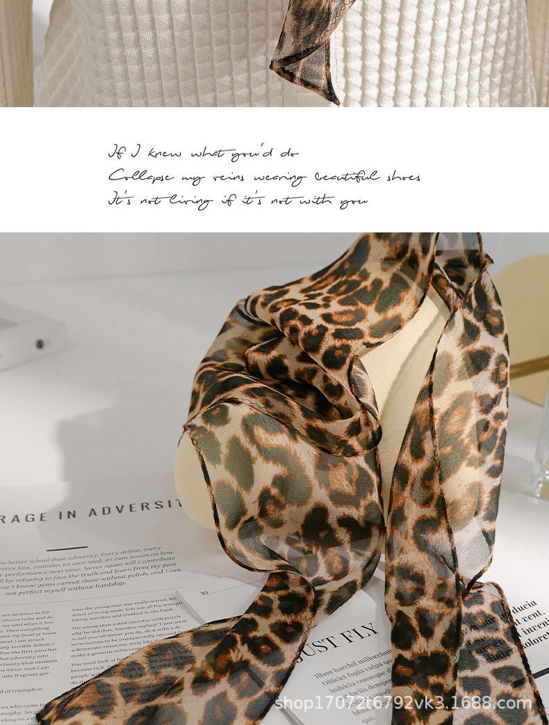 • 【세련된 레오파드 패턴 10*145cm 내외】 조젯 롱 스카프