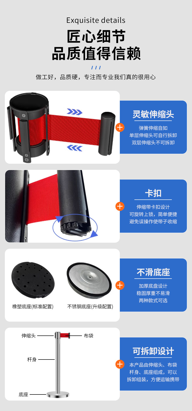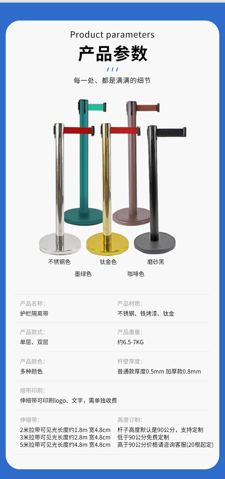스테인리스 격리 테이프 맞춤형 신축식 울타리 쇼핑몰 은행 대기열 1.0m 라인 가드레일 안전 강화 경고 기둥스토어 가기