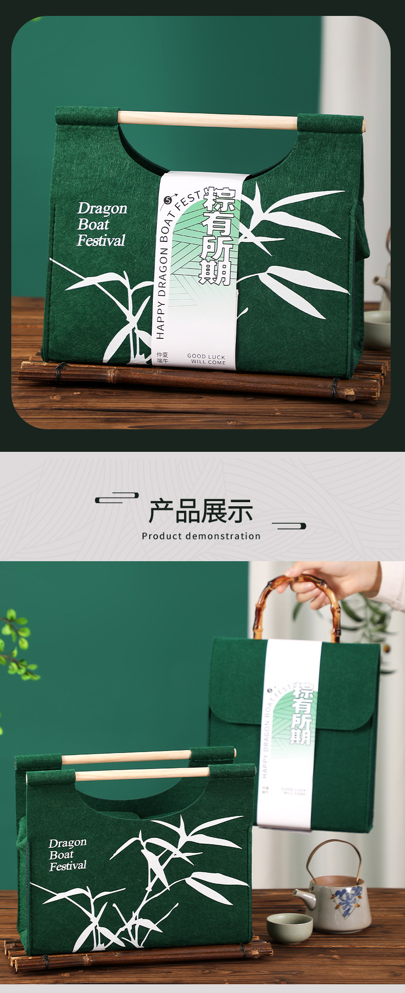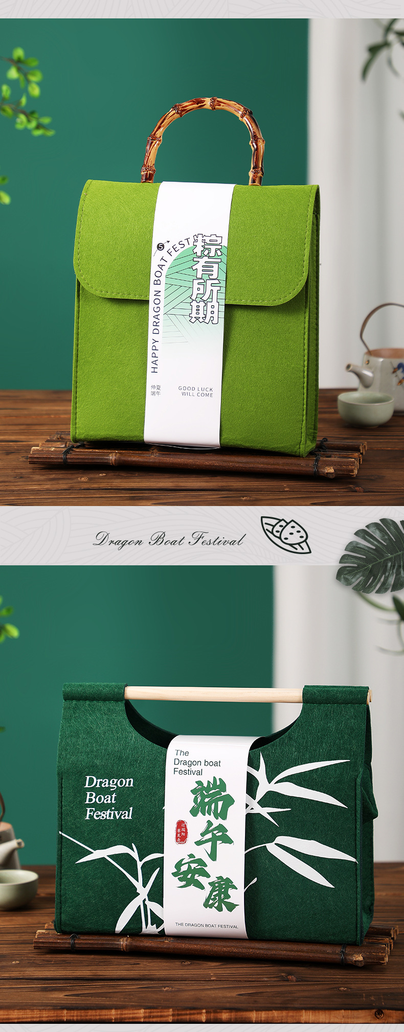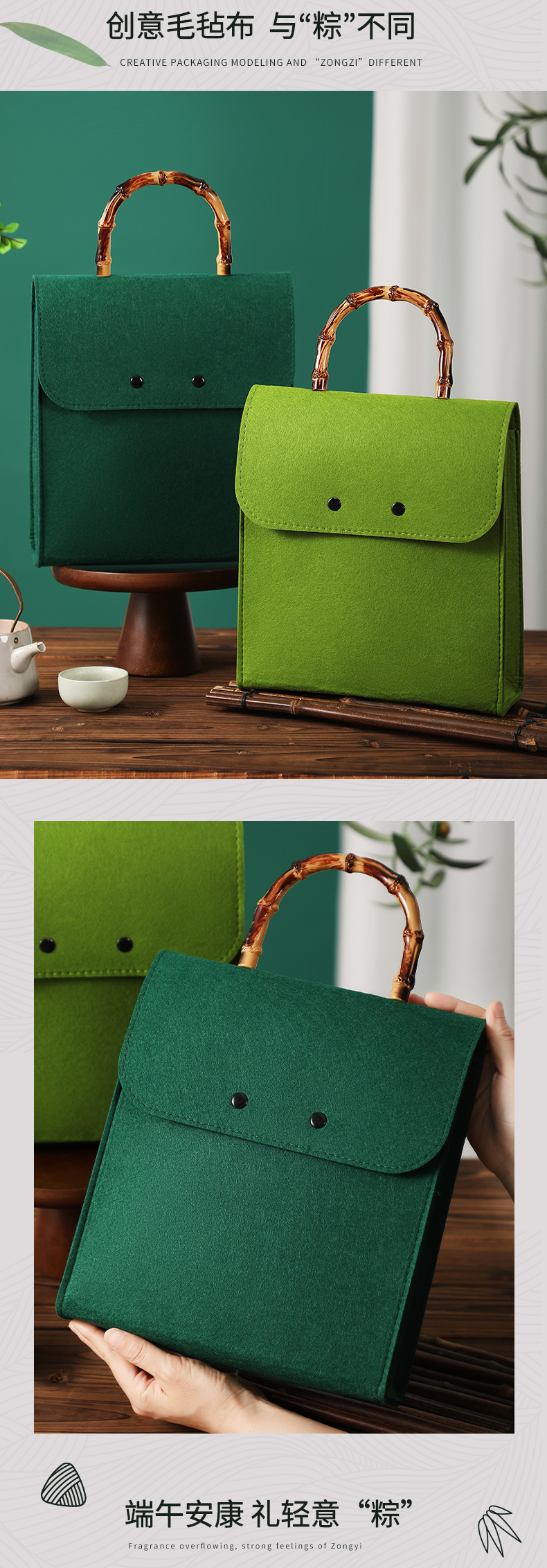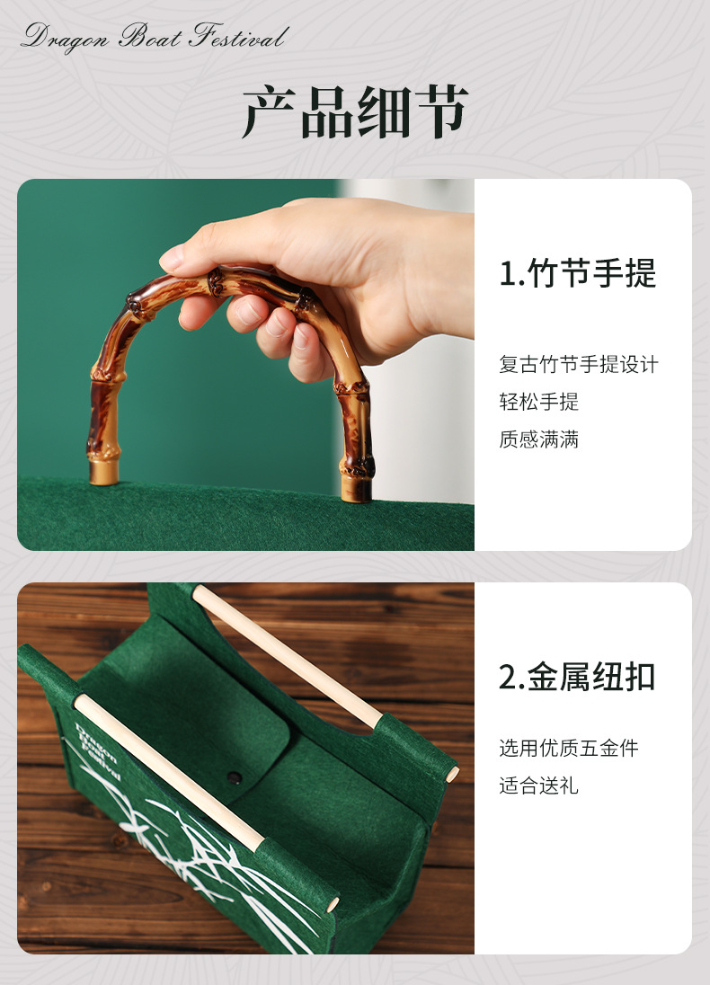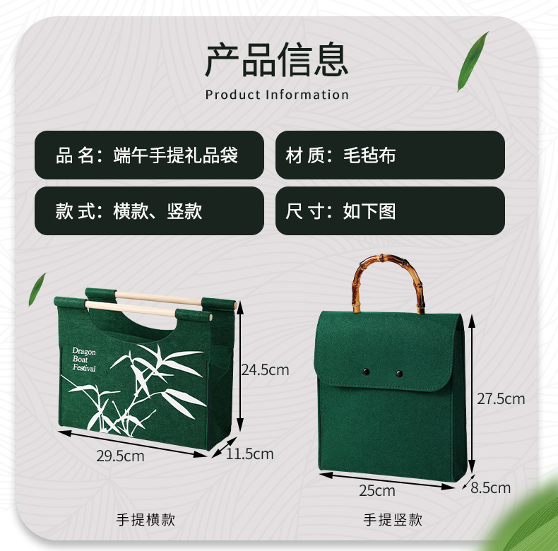새로운 드래곤 보트 축제 펠트 선물 가방 녹색 Zongzi 포장 가방 휴일 선물 소금에 절인 오리 계란 선물 가방 회사 복지스토어 가기