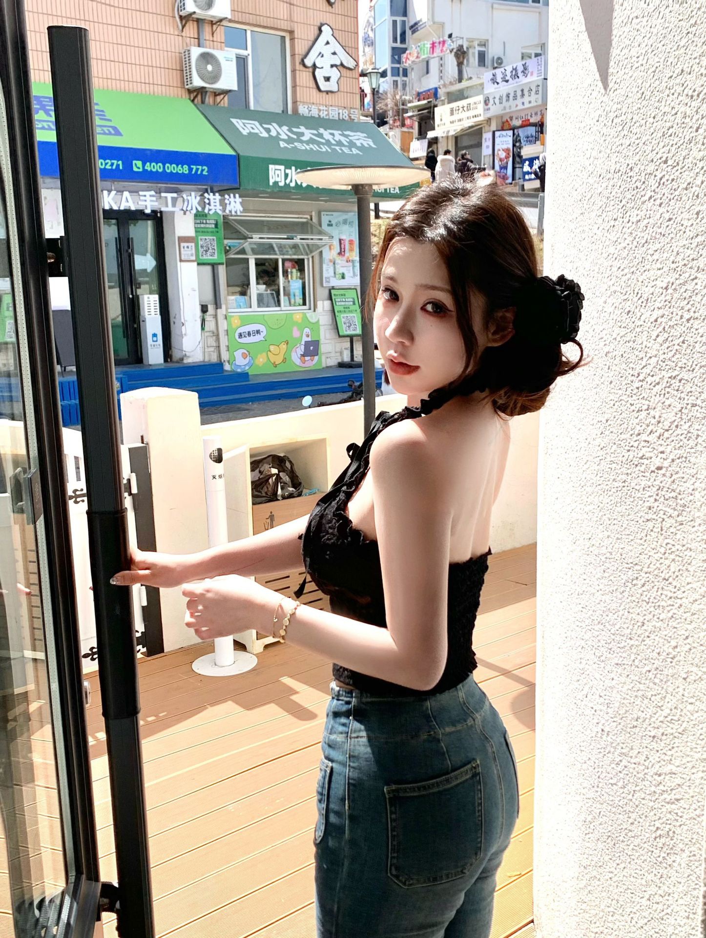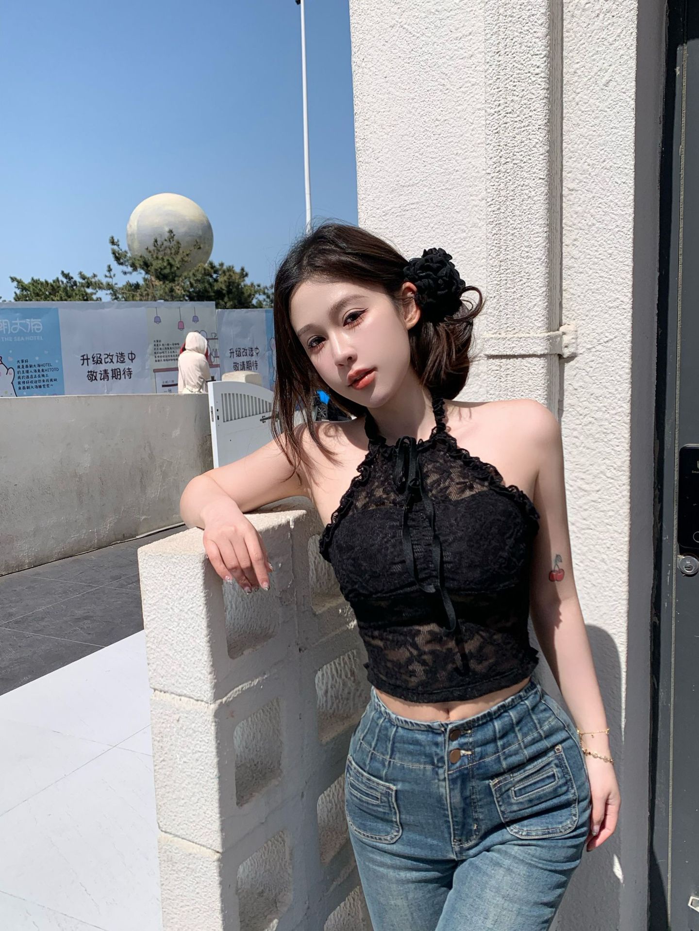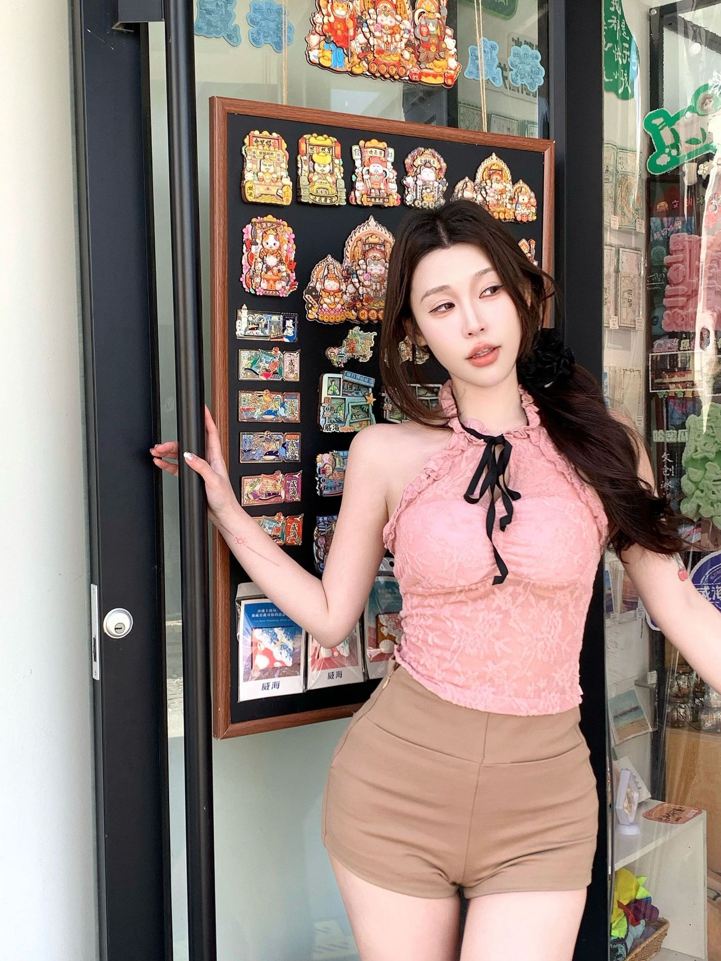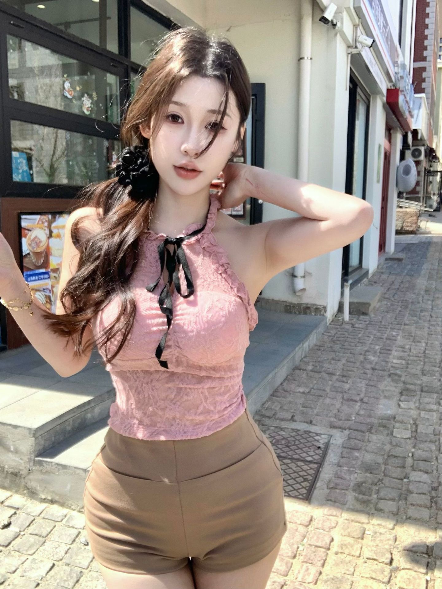 핫걸 퓨어 러스티 홀터넥 레이스 스트랩 캐미솔 쇼트 메쉬 탑 슬림핏 백리스 튜브탑 트렌디스토어 가기
