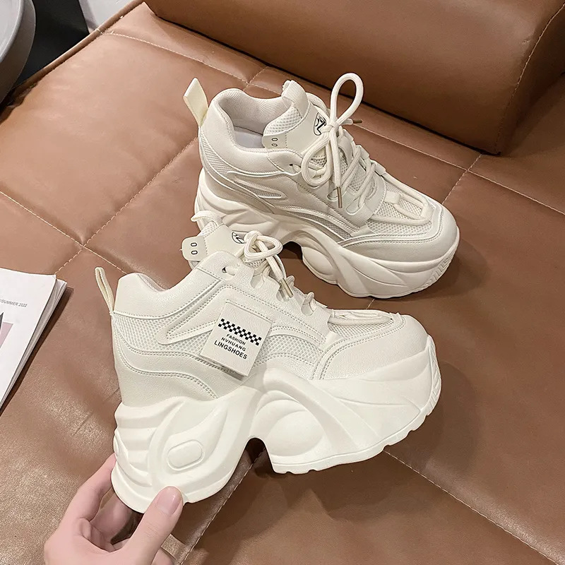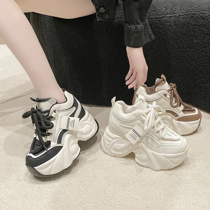 2025 년 여름 새로운 9cm 내부 높이 여성 신발 두꺼운 밑창 작은 굽 아빠 신발 올매치 스포츠 캐주얼 신발스토어 가기