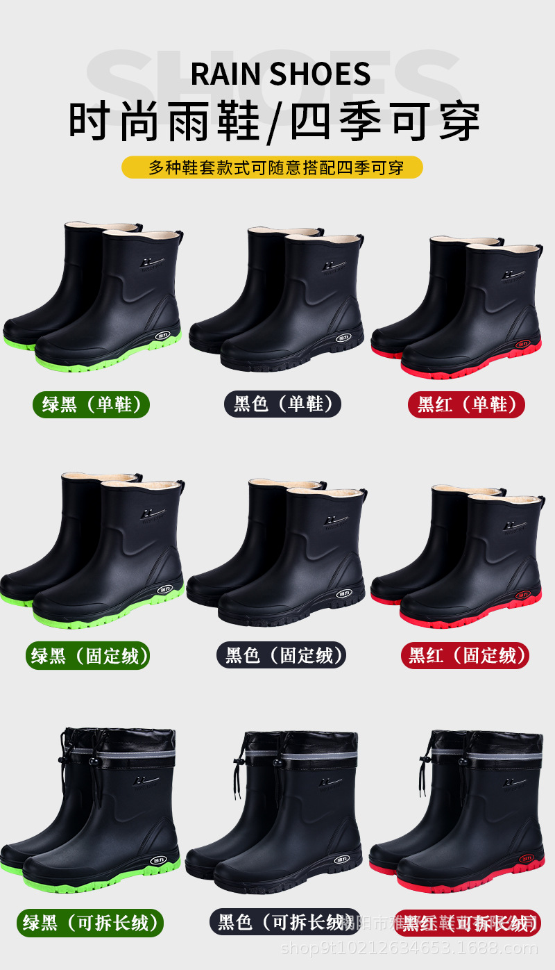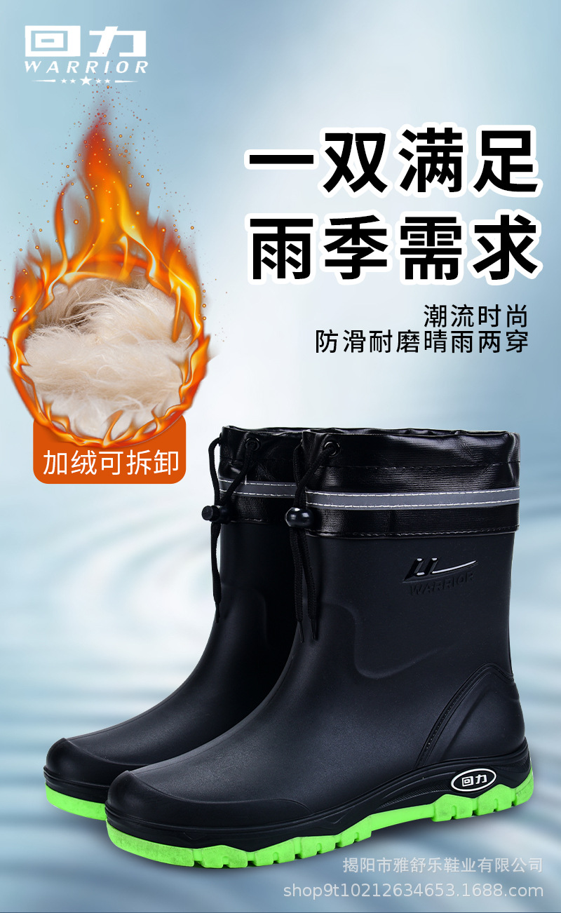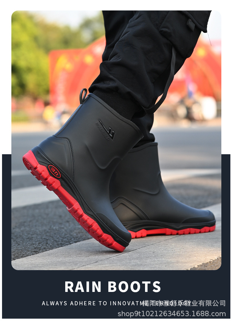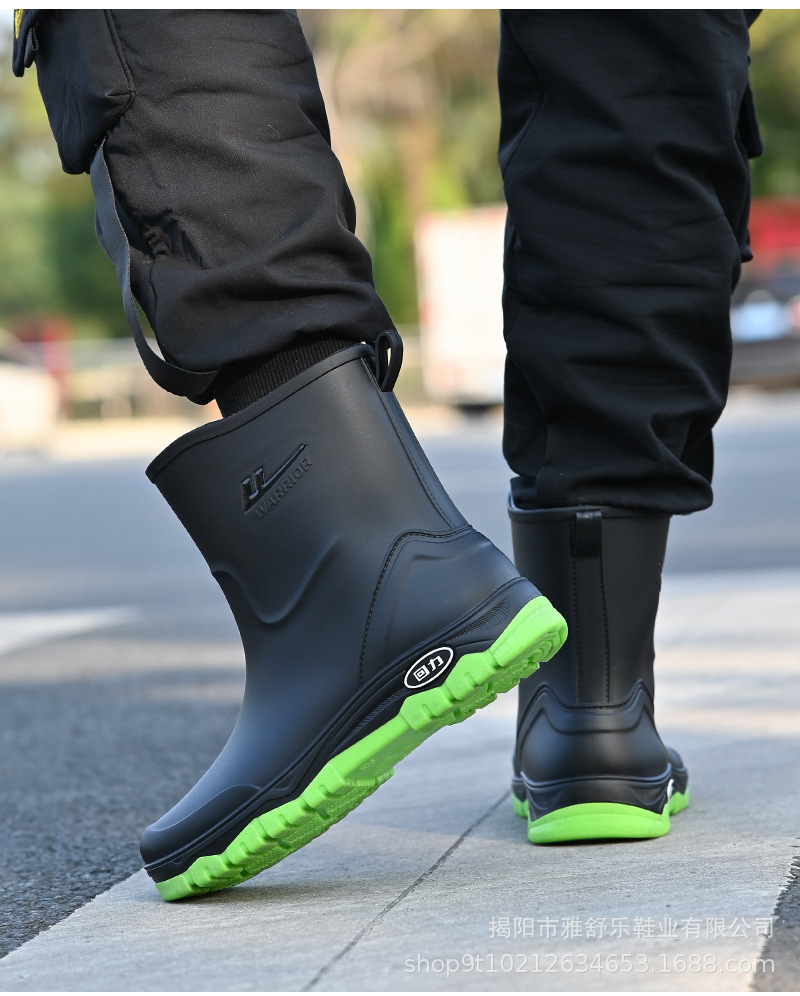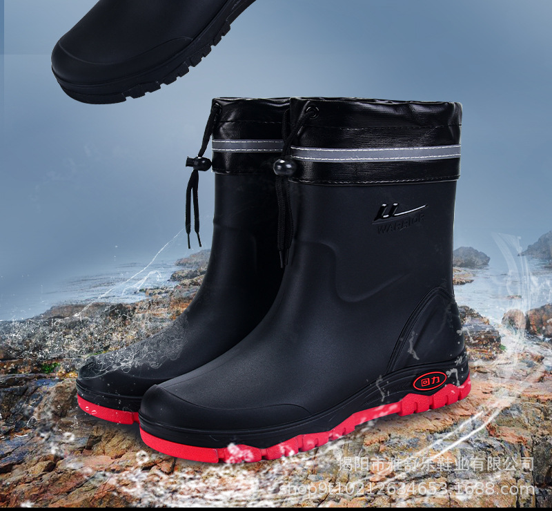 남성용 풀백 레인부츠 2025 신형 미드튜브 방수화, 미끄럼 방지 워터부츠, 벨벳 따뜻한 장화, 고무신, 낚시신스토어 가기
