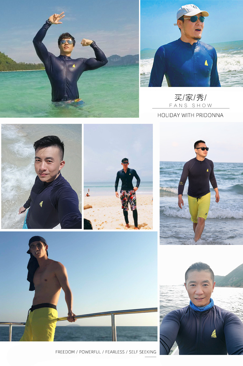 남성용 새로운 한국식 잠수복, 야외 지퍼 슬라이딩 스플릿 타이트 긴팔 서핑 슈트, 자외선 차단 스노클링 해파리 슈트