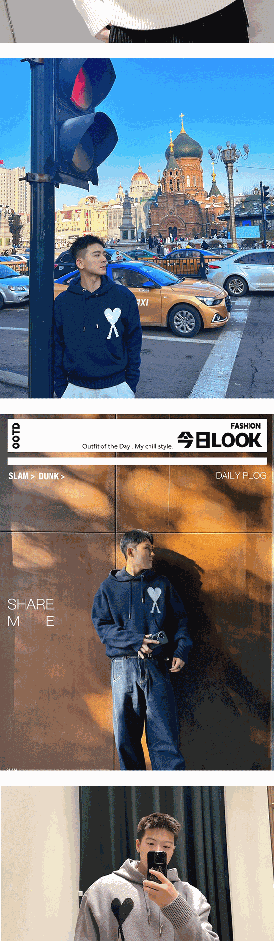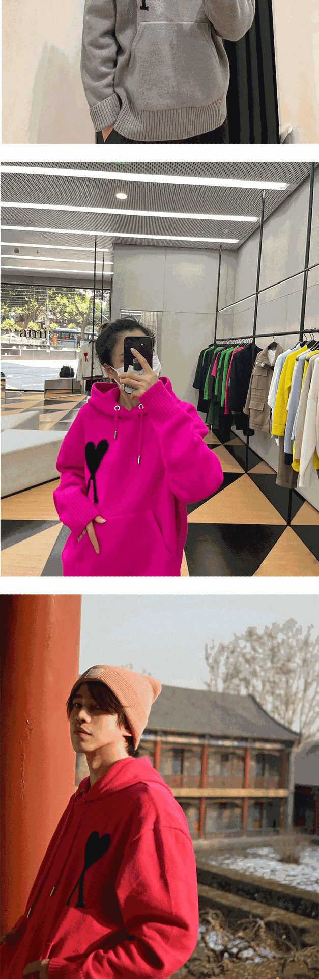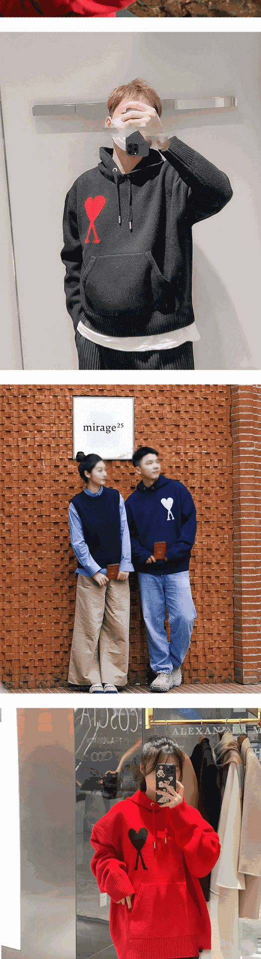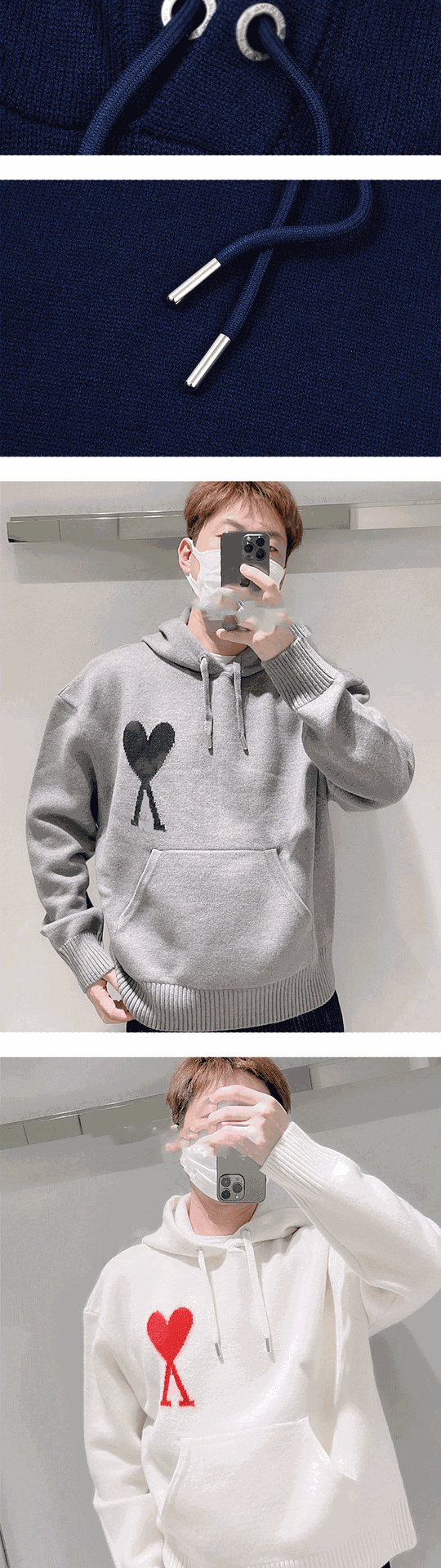 AMI CLAMS 클래식 러브 스웨터 캐주얼 후드 풀오버 루즈 남성 및 여성 니트 후드티스토어 가기
