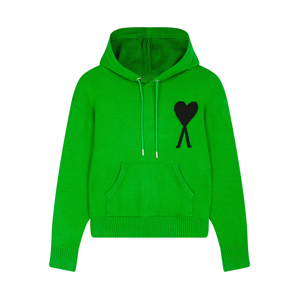 AMI CLAMS 클래식 러브 스웨터 캐주얼 후드 풀오버 루즈 남성 및 여성 니트 후드티