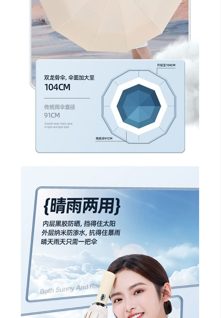 24k 완전 자동 우산 접이식 태양 우산 플러스 사이즈 이중 사용 도매 광고 우산 공장 아울렛스토어 가기