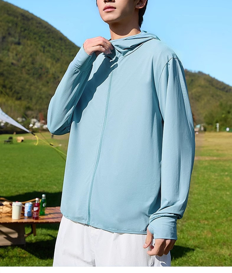 태양 보호 의류 여름 얼음 실크 태양 보호 의류 울트라 얇은 후드 짧은 재킷 안티 자외선 통기성 빠른 건조 낚시 의류 남성용