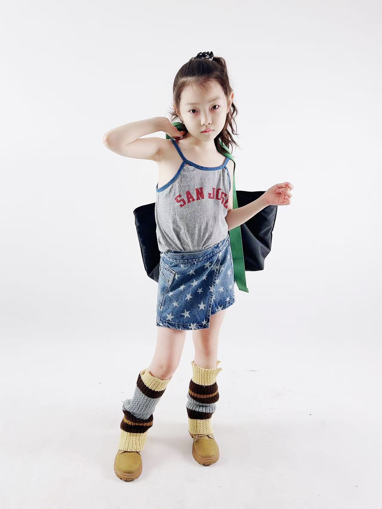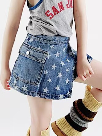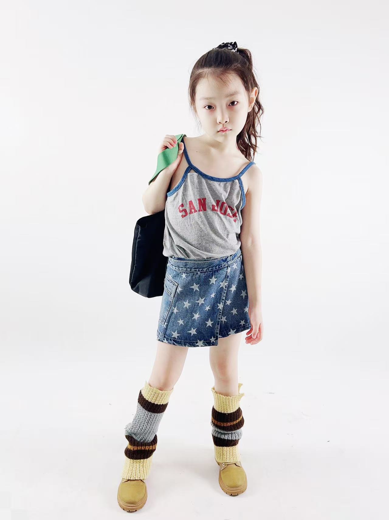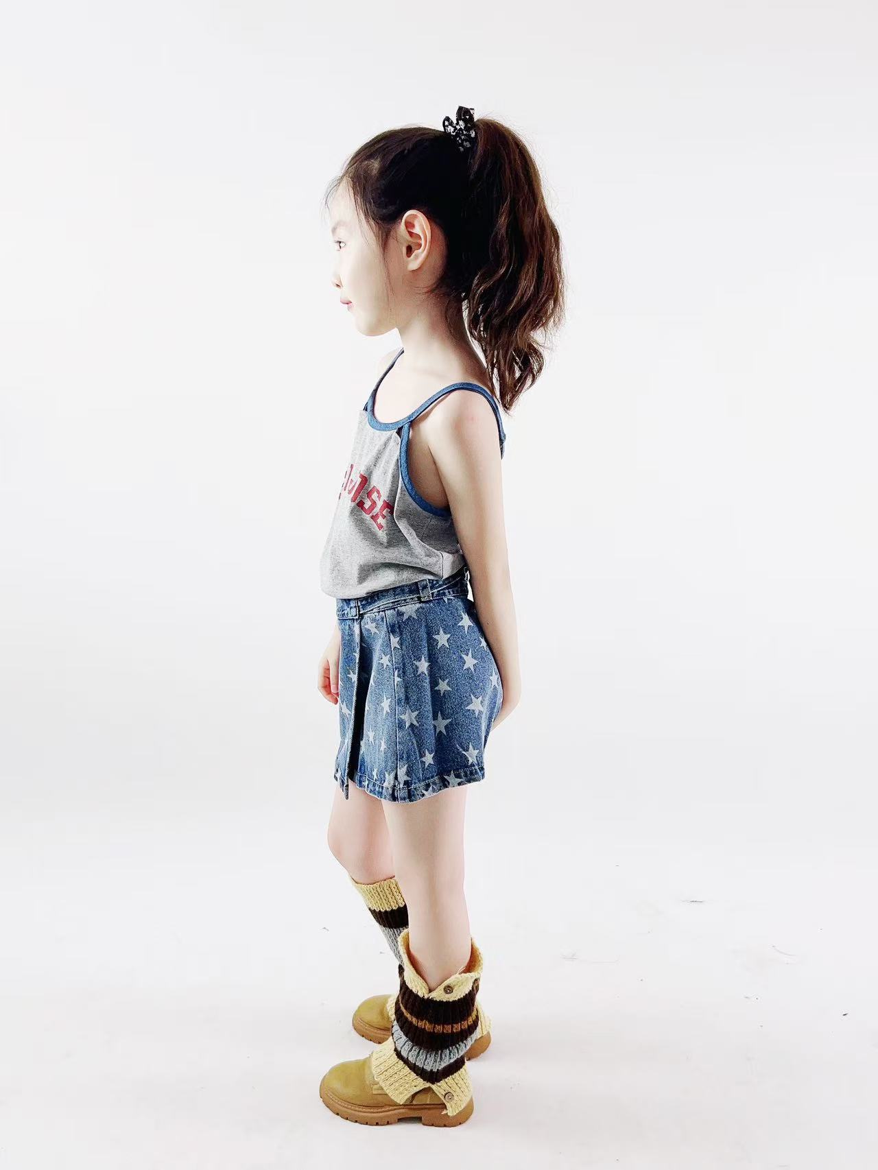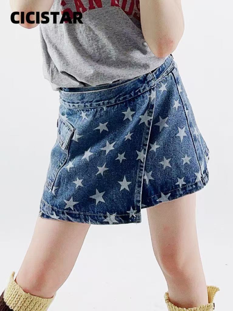 2025 새로운 여름 어린이 스타 데님 스커트 소녀 패션 한국 스타일 스커트 어린이를위한 짧은 스커트 벨트스토어 가기