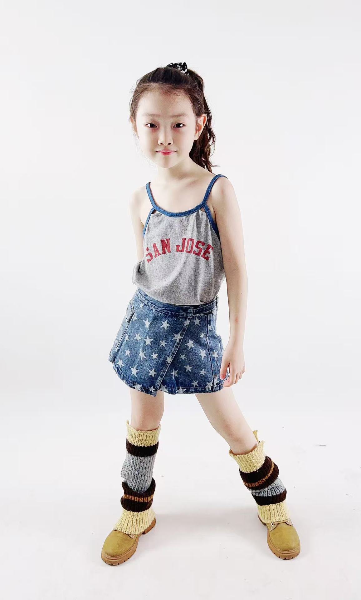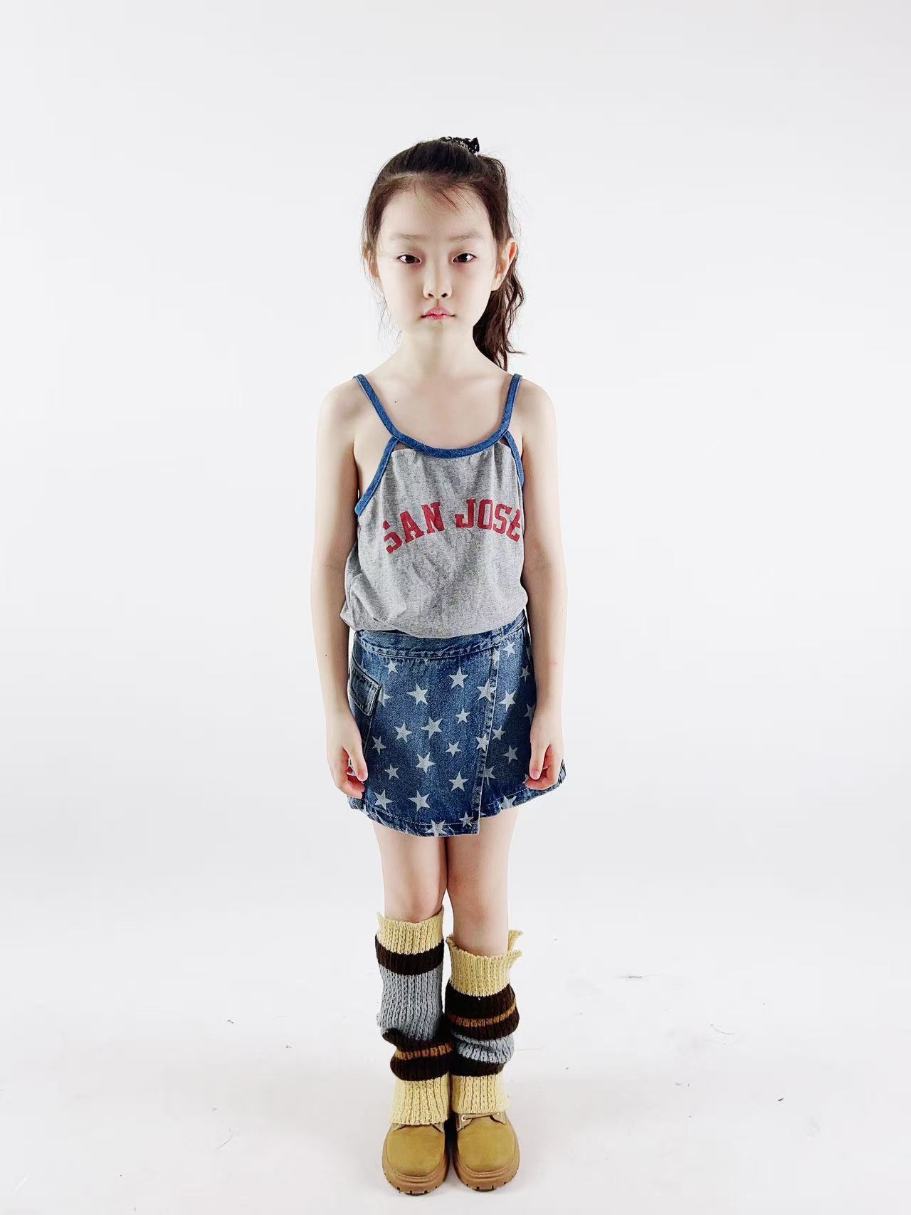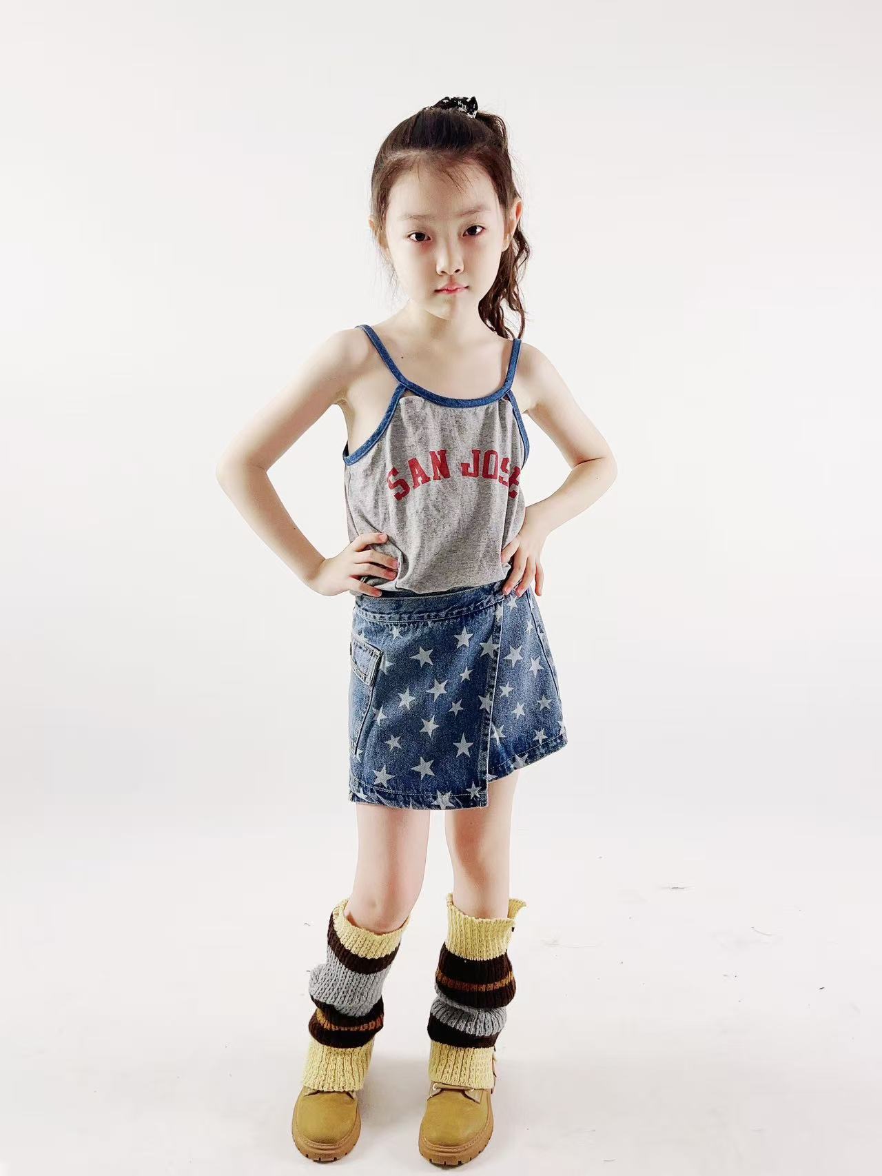 2025 새로운 여름 어린이 스타 데님 스커트 소녀 패션 한국 스타일 스커트 어린이를위한 짧은 스커트 벨트스토어 가기