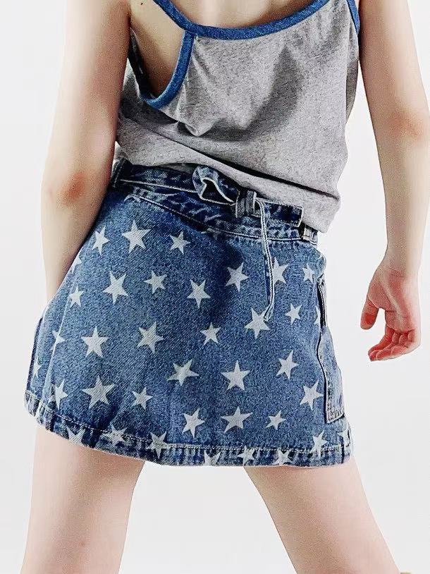 2025 새로운 여름 어린이 스타 데님 스커트 소녀 패션 한국 스타일 스커트 어린이를위한 짧은 스커트 벨트