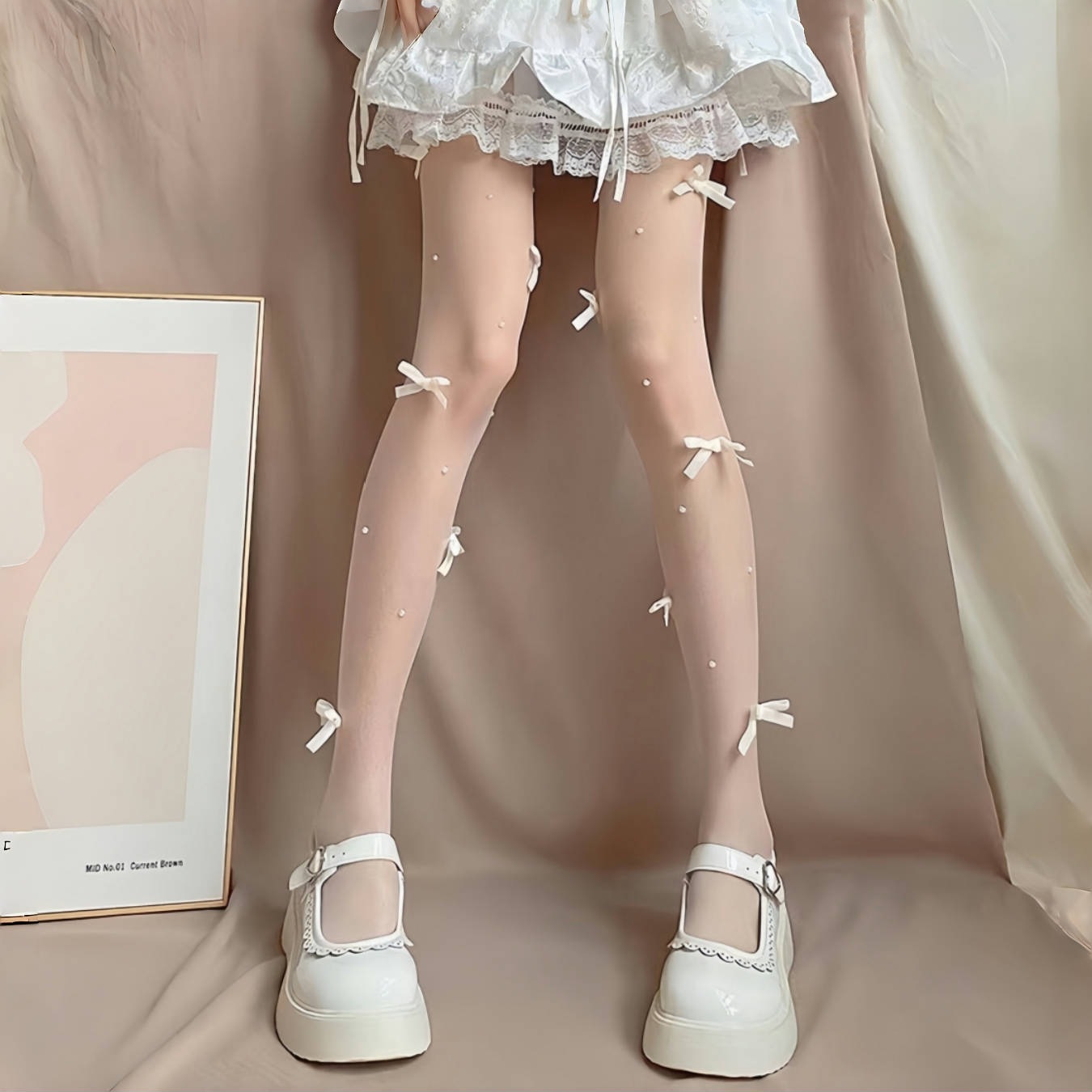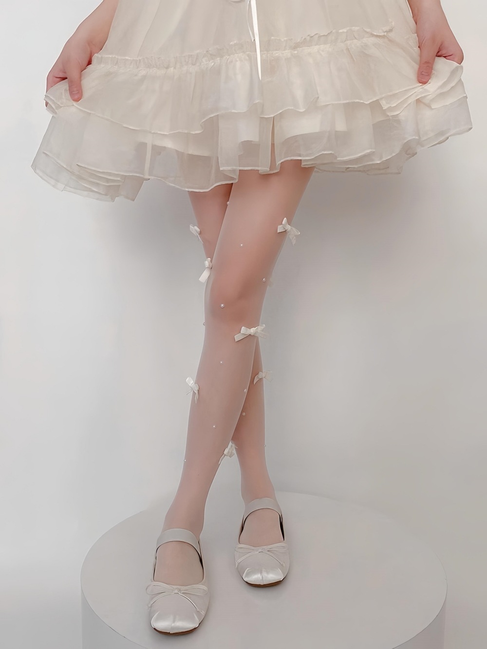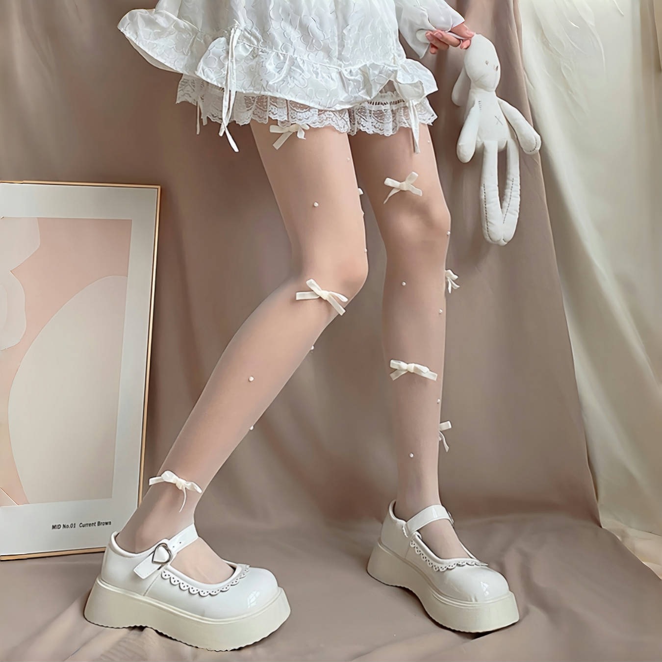 활 진주 화이트 실크 스타킹 발레 스타일 달콤한 일본 순수 화이트 팬티 스타킹 JK 로리타베이스 양말스토어 가기