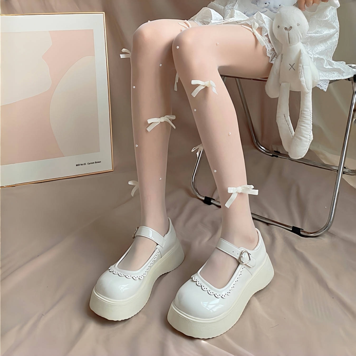 활 진주 화이트 실크 스타킹 발레 스타일 달콤한 일본 순수 화이트 팬티 스타킹 JK 로리타베이스 양말