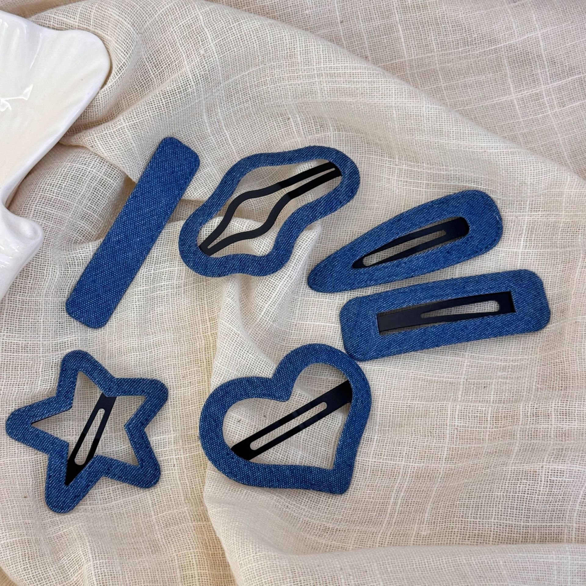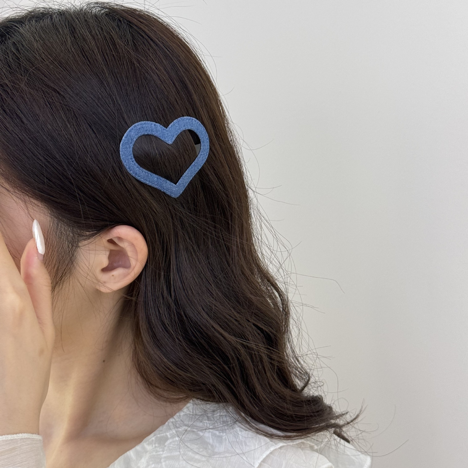 데님 블루 헤어핀 앞머리 클립 깨진 헤어 클립 귀여운 올 매치 스타 사랑 헤어핀 헤어 액세서리