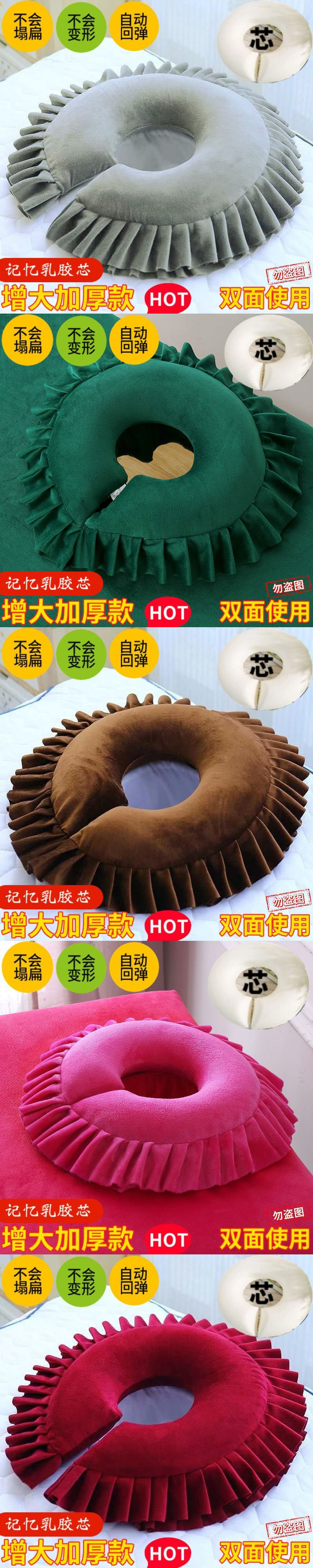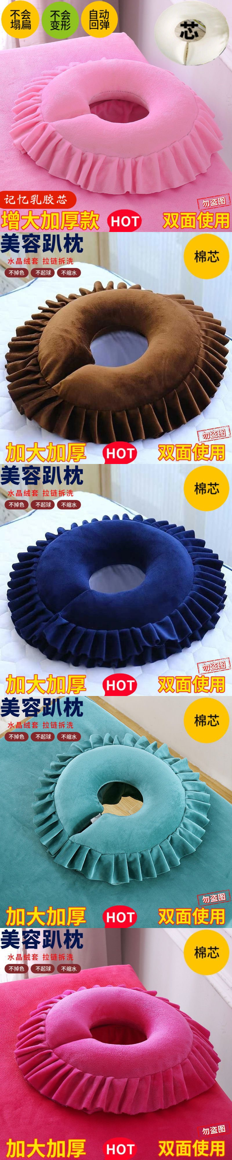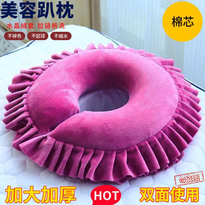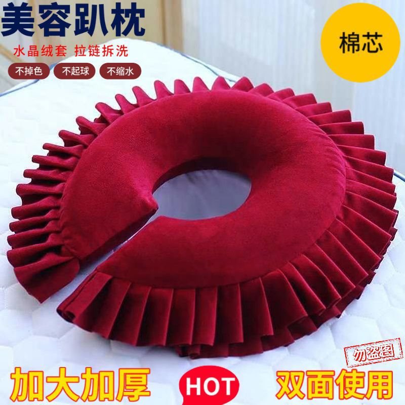 • 미용침대 구멍베개(면심) 로즈레드 - 커버 탈부착 및 세탁 가능