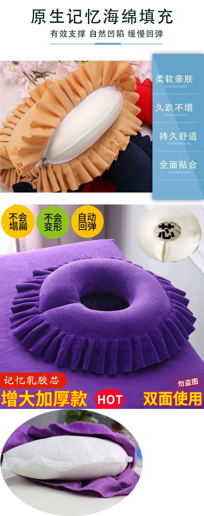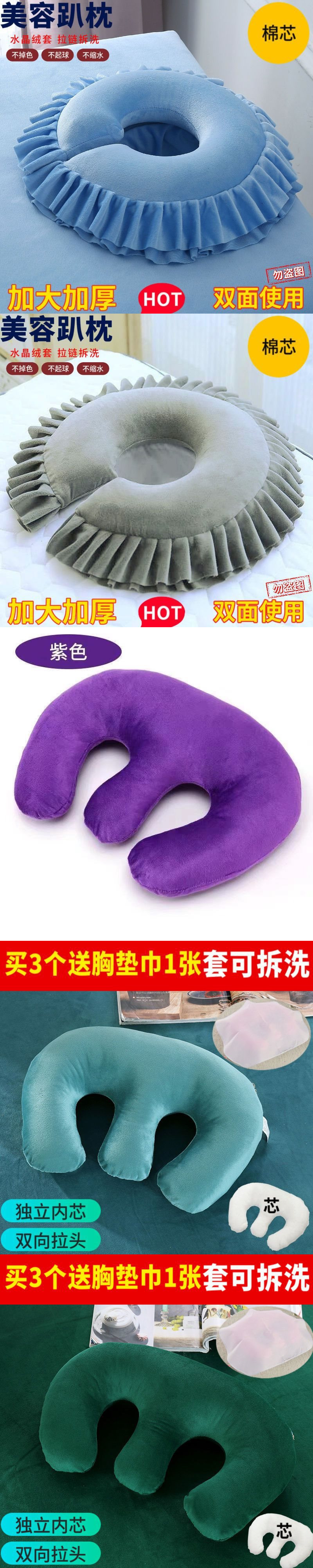 • 미용침대 구멍베개(면심) 보라색 - 커버는 탈부착 및 세탁 가능