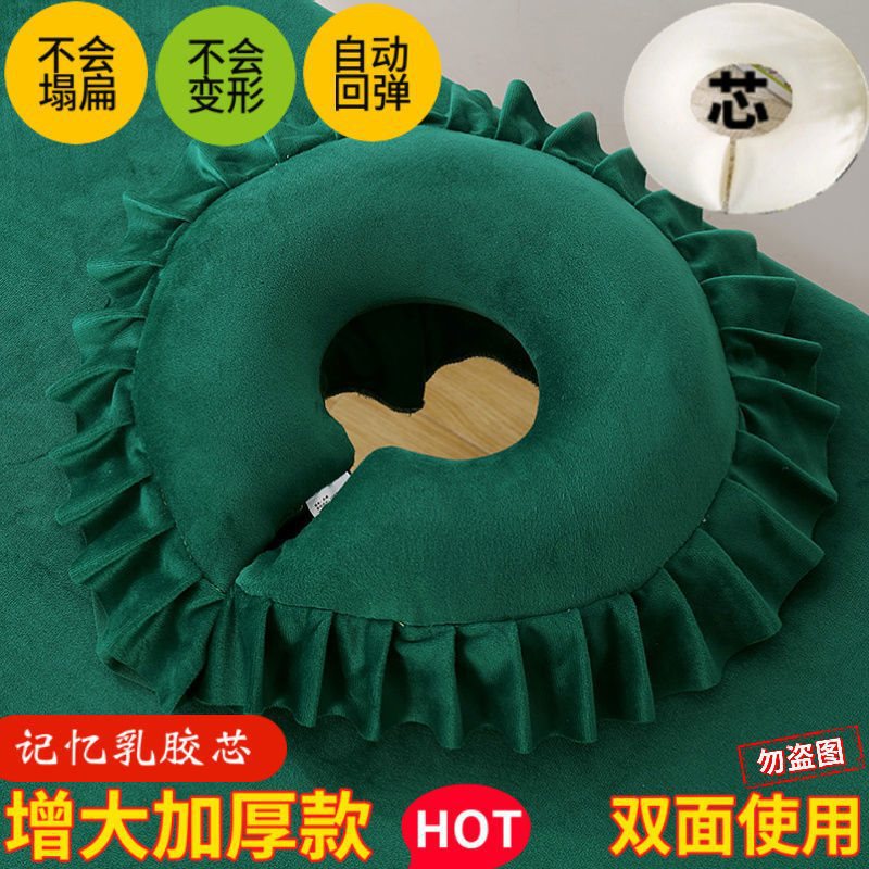 • 미용 침대 구멍 베개(면 심) 진한 녹색 - 커버는 분리 가능하고 세탁 가능
