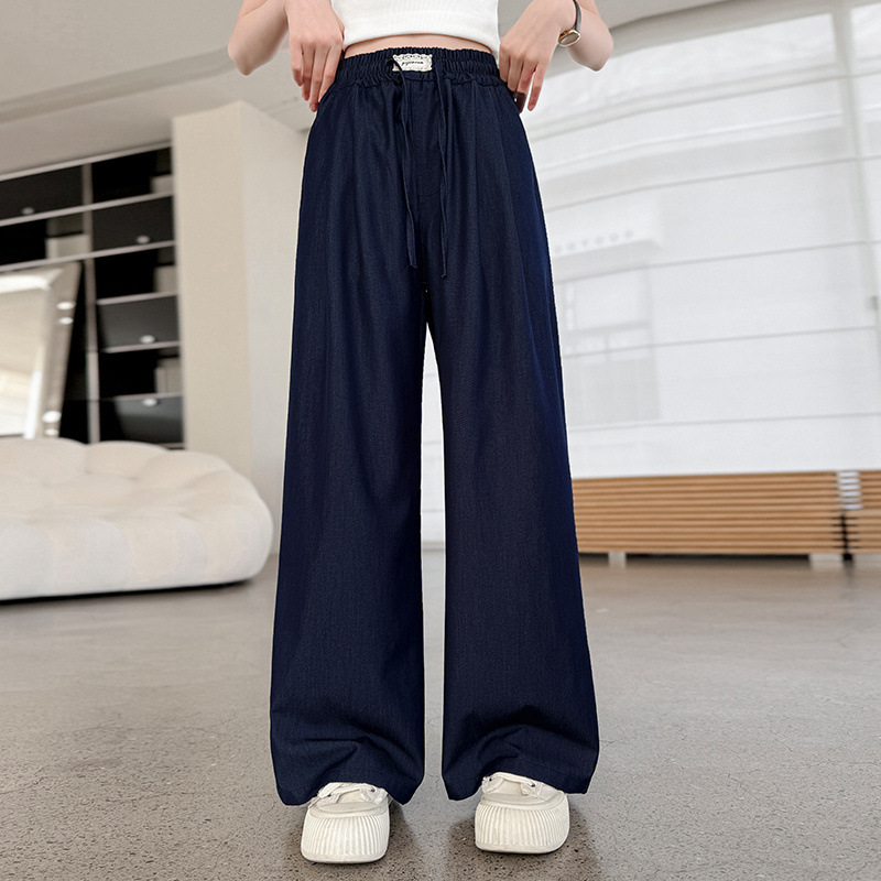 여자 여름 데님 텐셀 바지 2025 새로운 중학교 소녀 얇은 어두운 바지 소녀 넓은 다리 바지스토어 가기