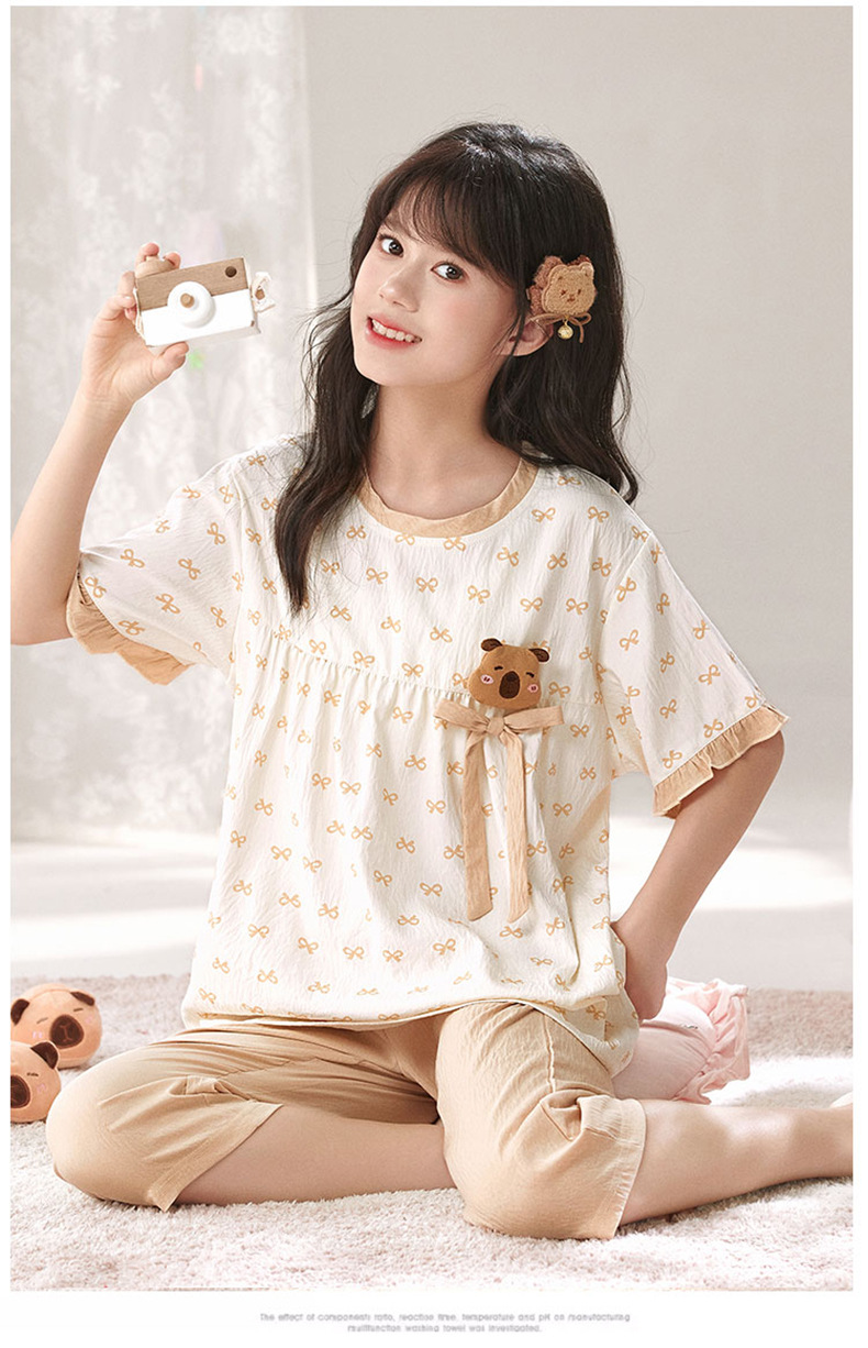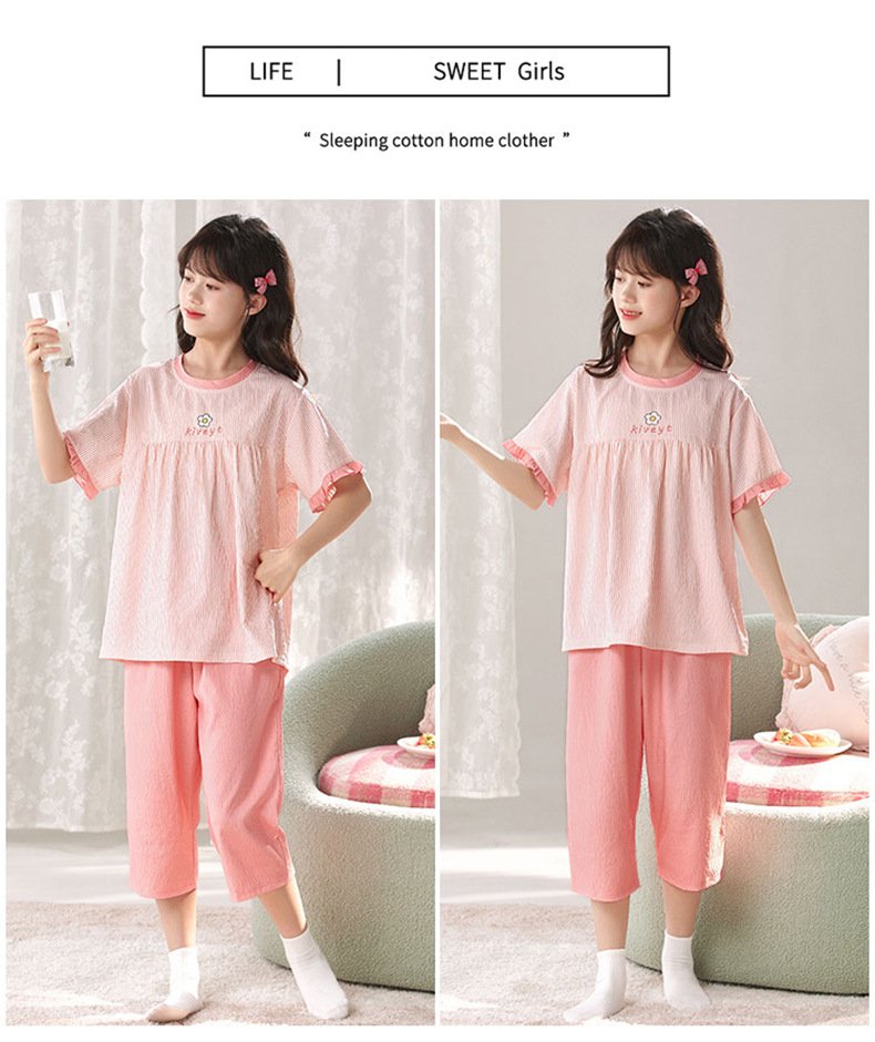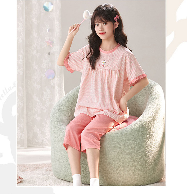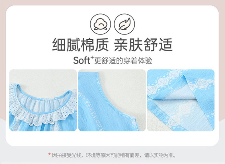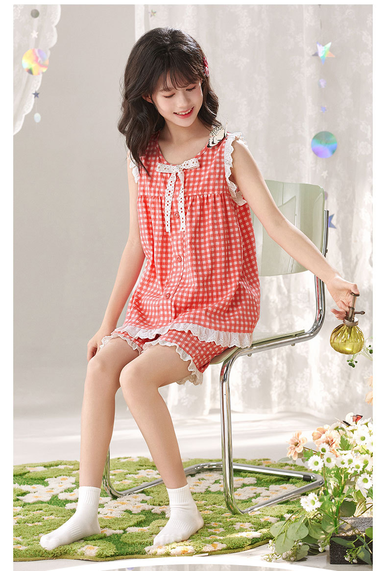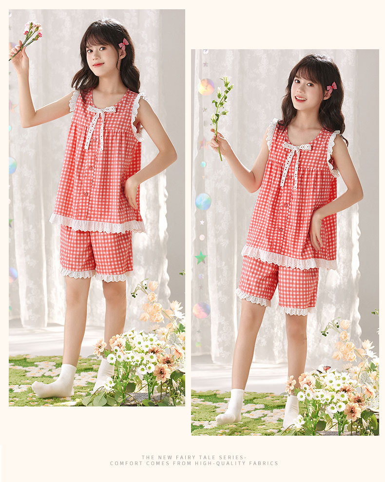 어린이 잠옷 여름 실크 면 얇은 풀오버 달콤하고 귀여운 공주 스타일 소형, 중형 및 대형 소녀 홈웨어 세트