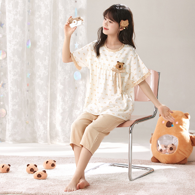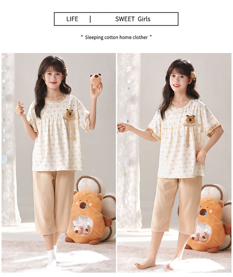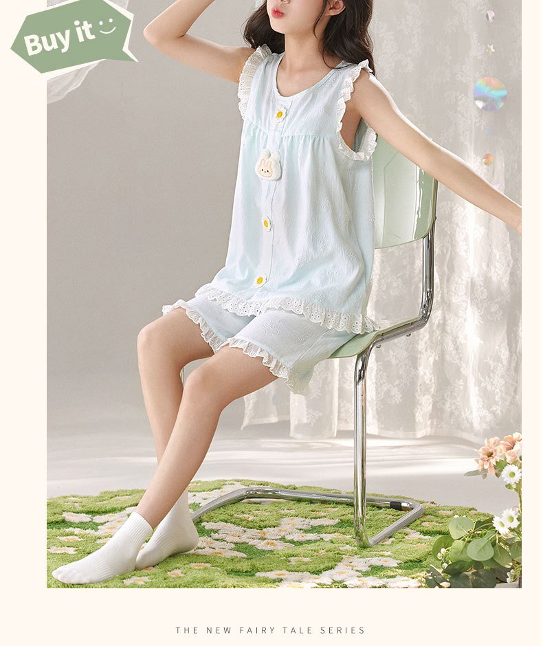 어린이 잠옷 여름 실크 면 얇은 풀오버 달콤하고 귀여운 공주 스타일 소형, 중형 및 대형 소녀 홈웨어 세트스토어 가기