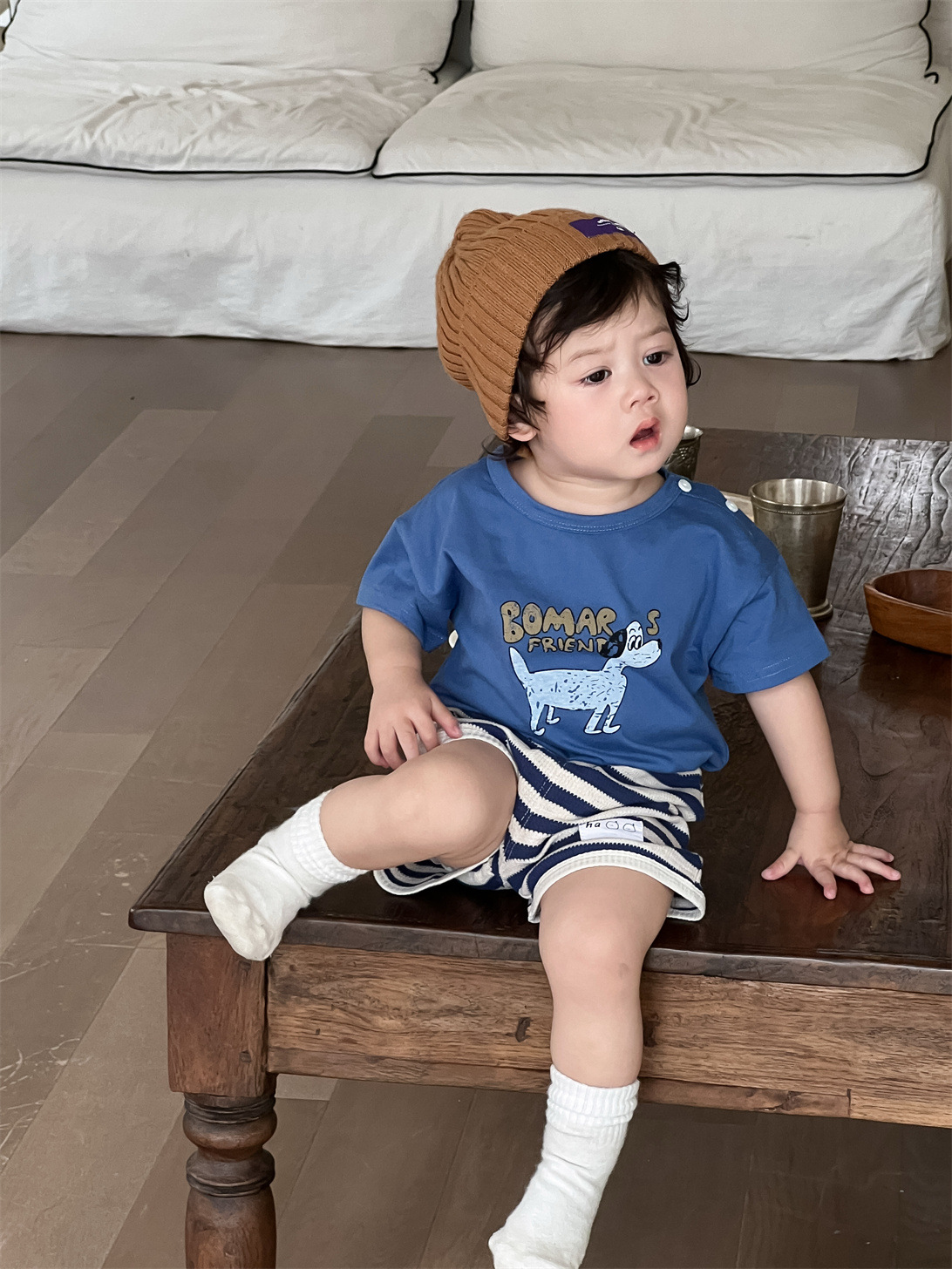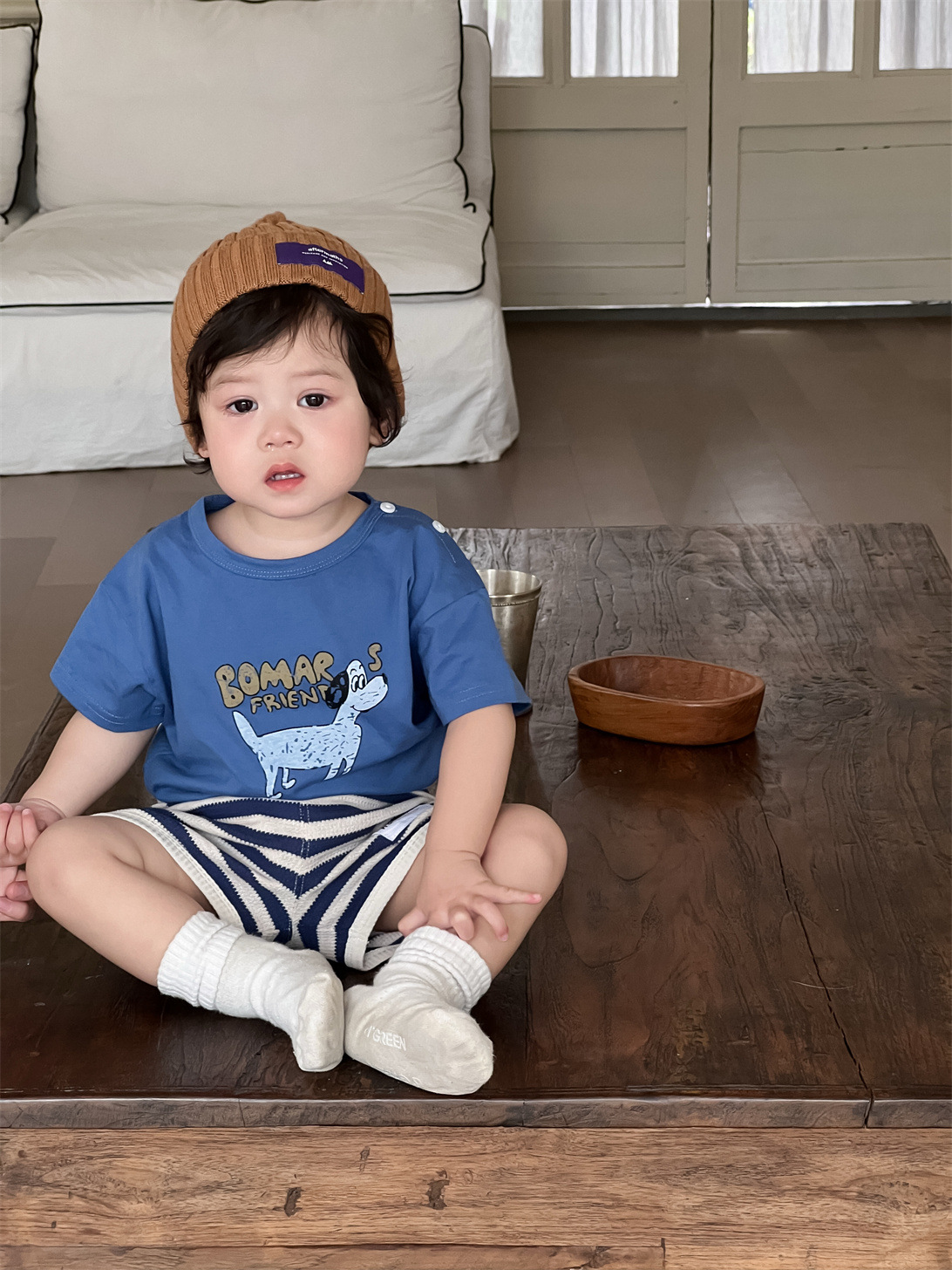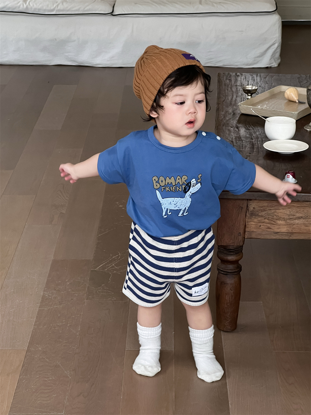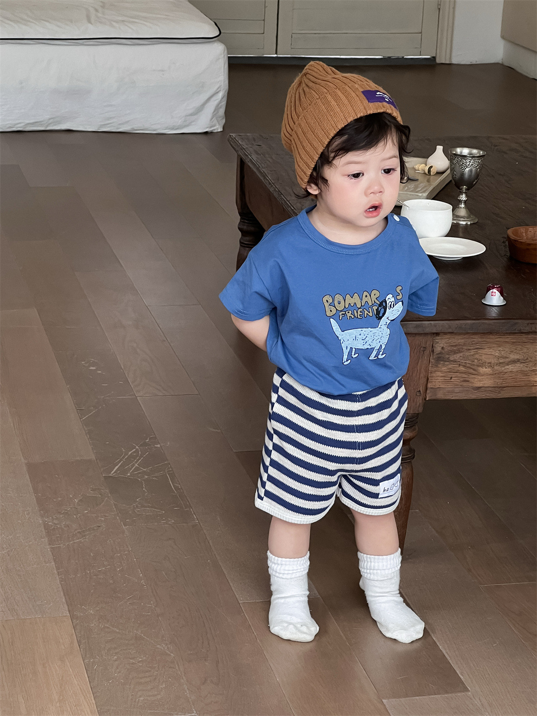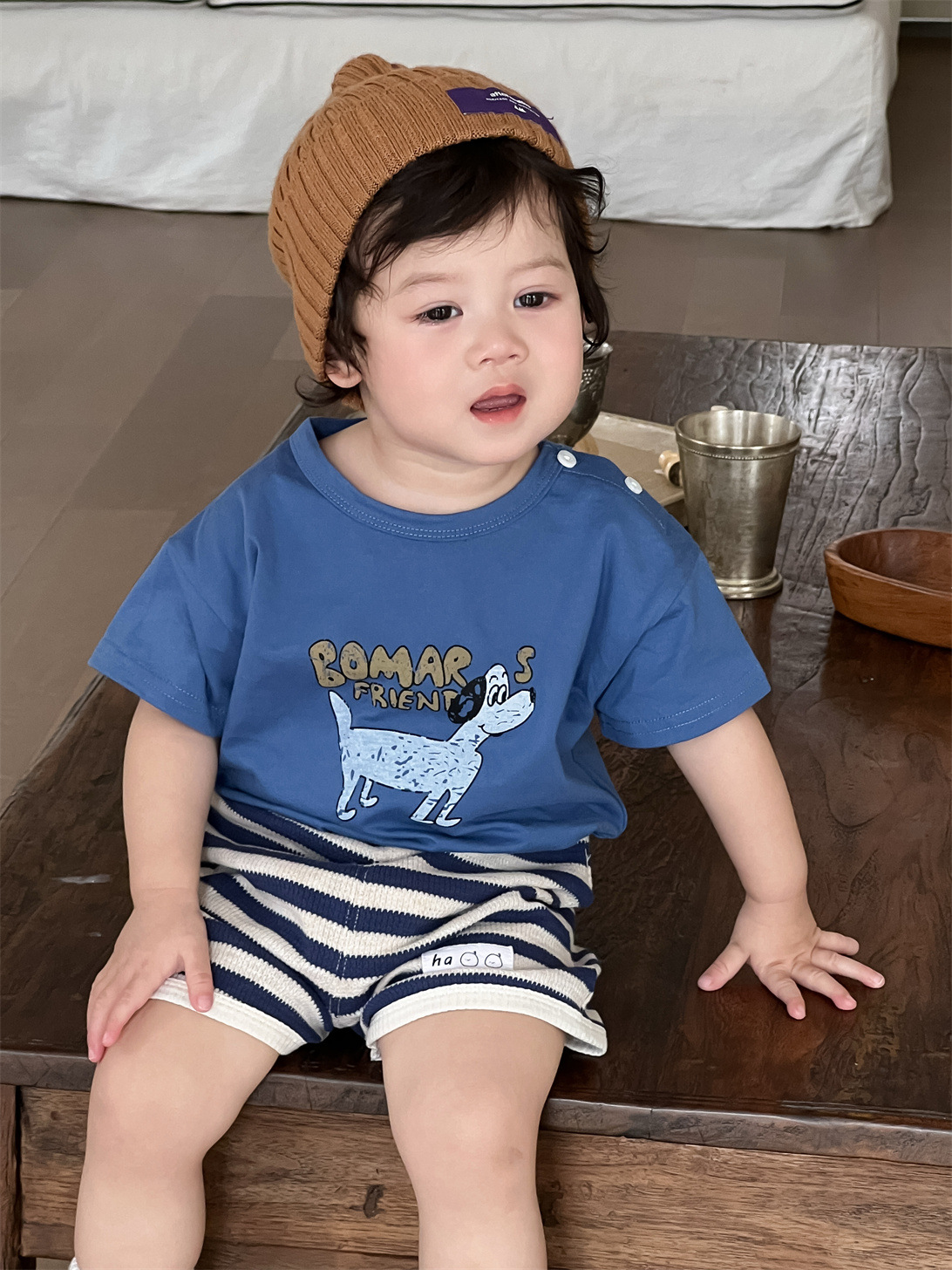 남아 여름옷 얇은 스타일 2026 아동 여름옷 한국 스타일 아동복 아기 만화 티셔츠 스트라이프 반바지 세트