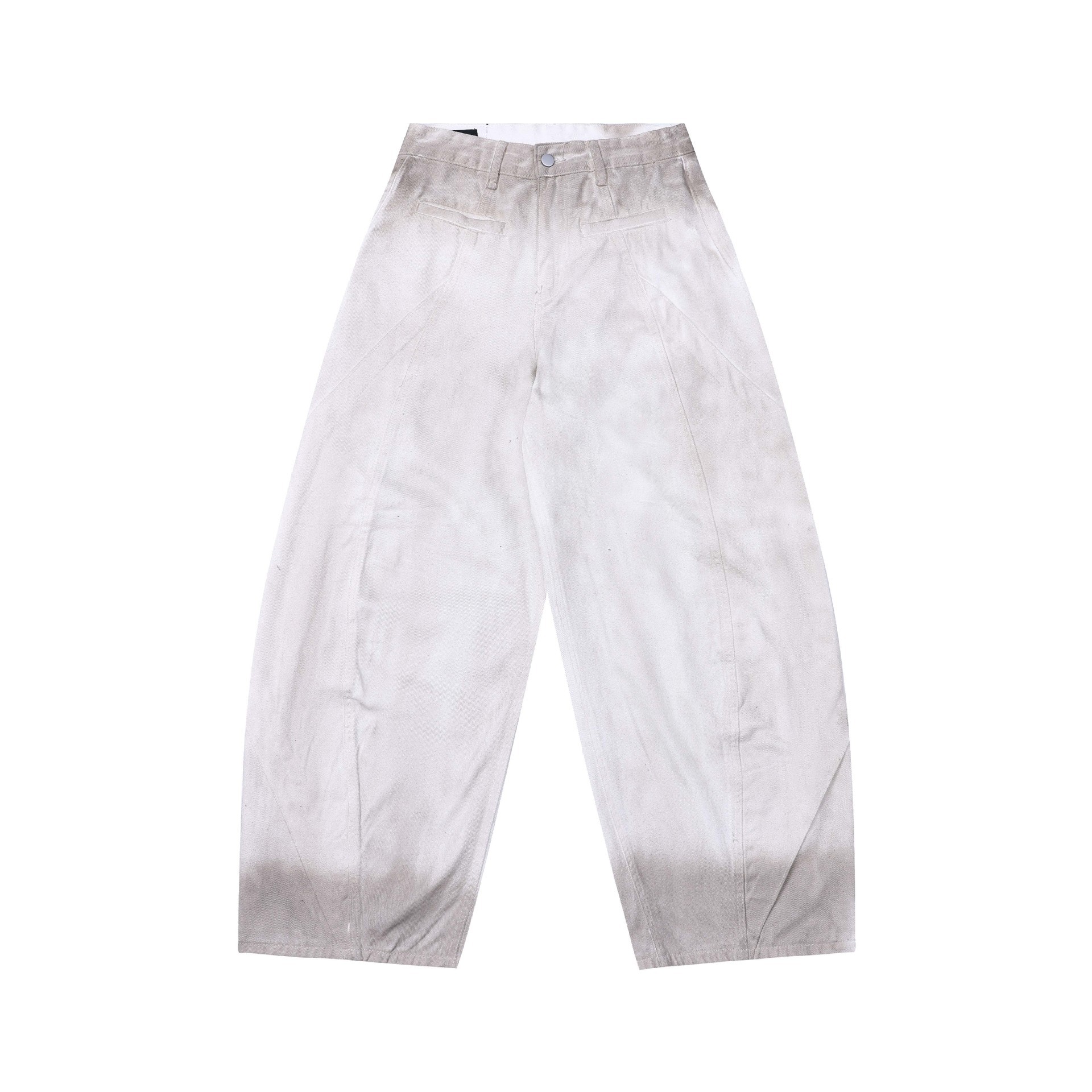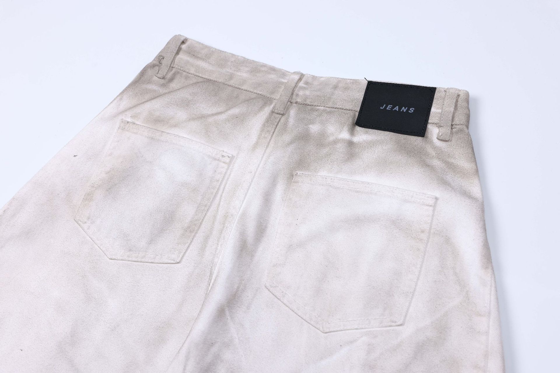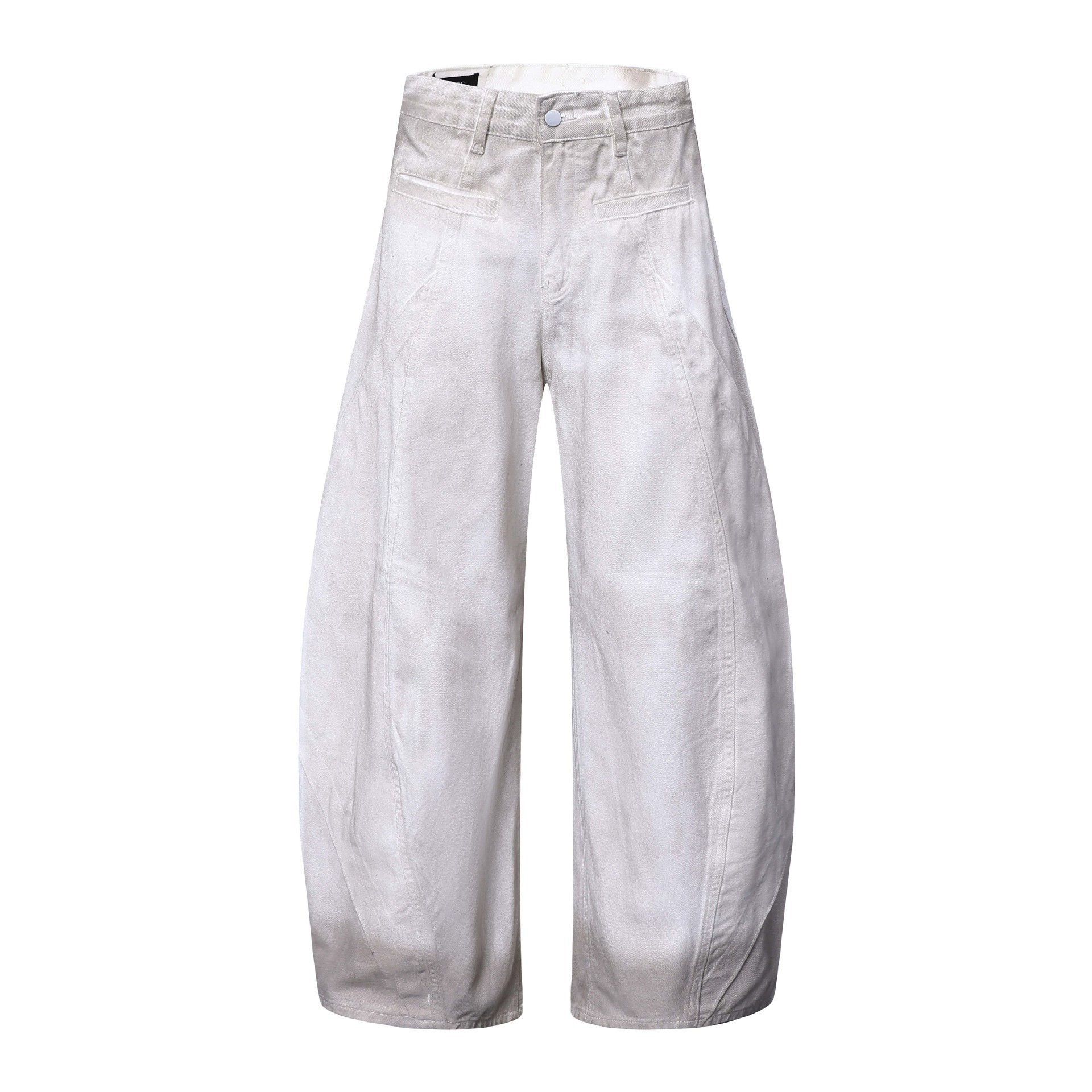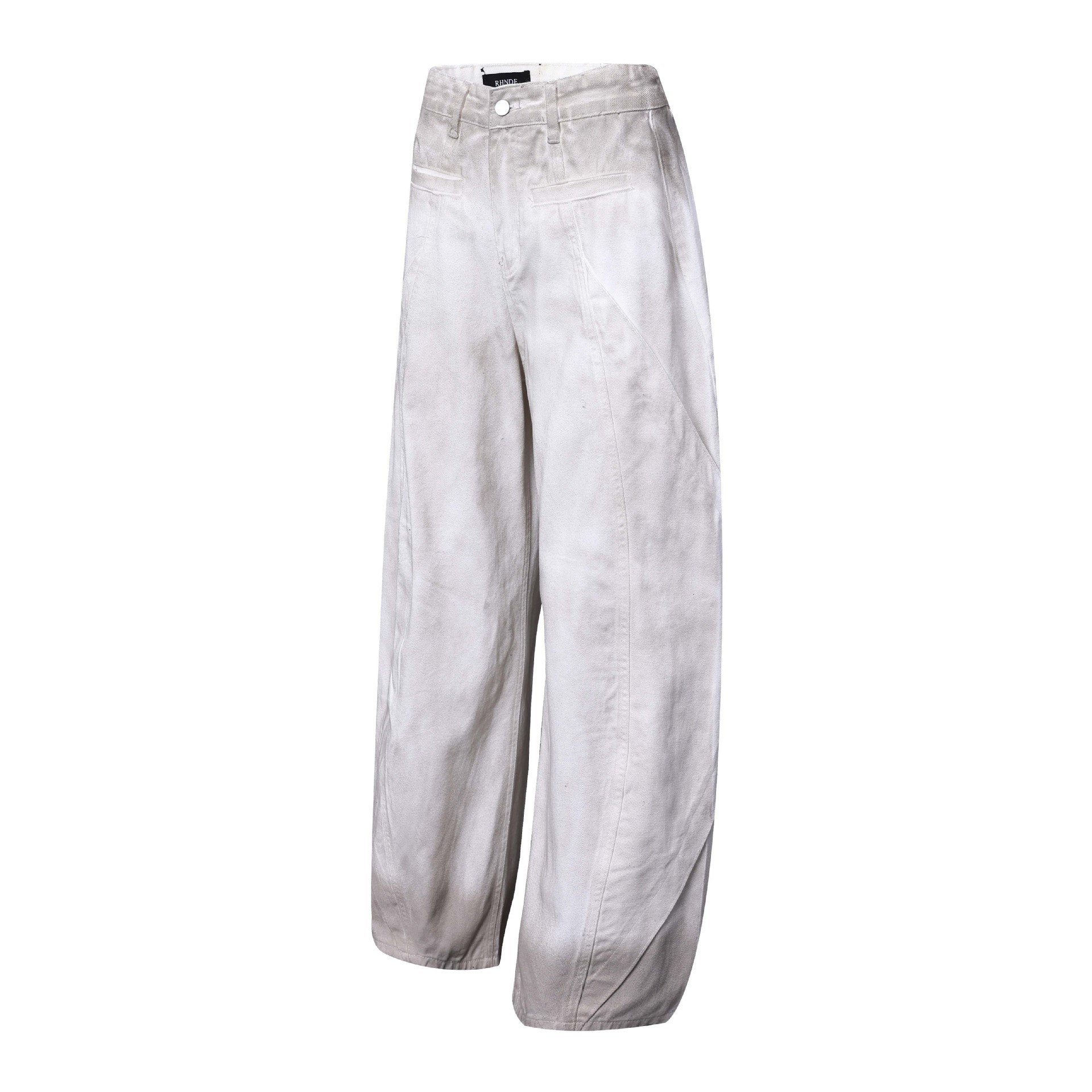 남성과 여성을 위한 미국 복고풍 워싱 및 디스트레스드 더티 커브드 씬 청바지, 트렌디한 브랜드 루즈한 와이드 레그 바닥 길이 바지 도매