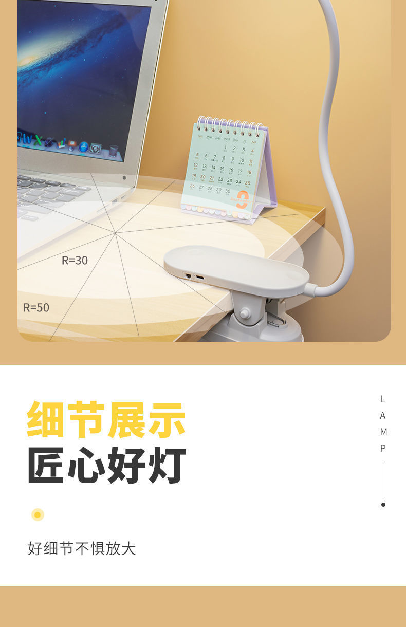 Bao량 클립 책상 램프 학습 램프 어린이 대학 기숙사 램프 충전식 눈 보호 램프 학습 침대 옆 램프