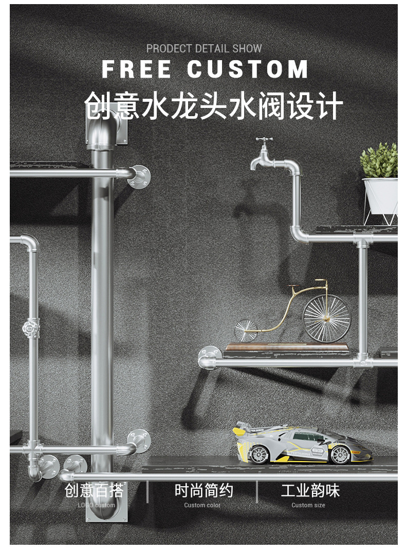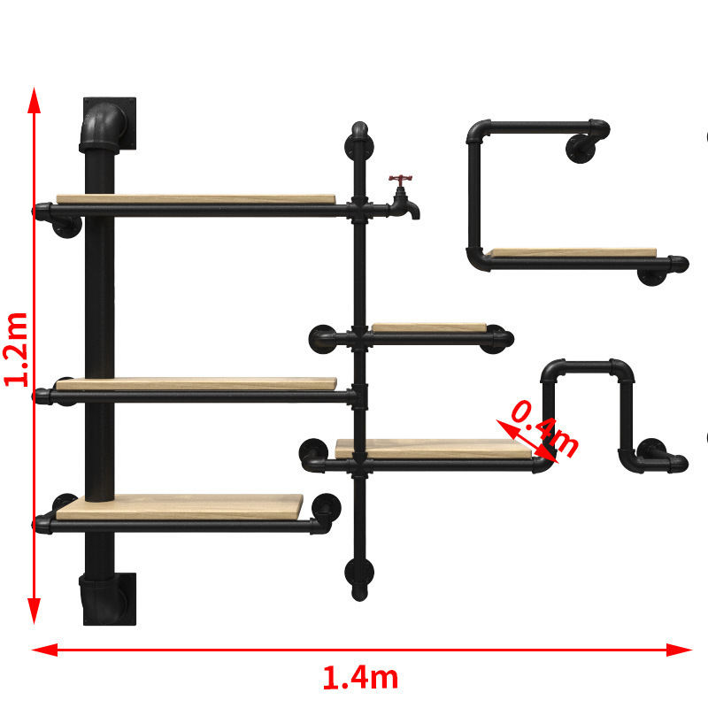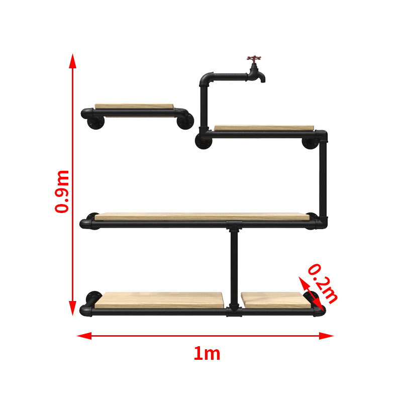 철수관 선반 거실 크리 에이 티브 벽걸이 바 장식 복고풍 산업 스타일 단단한 나무 선반 책장