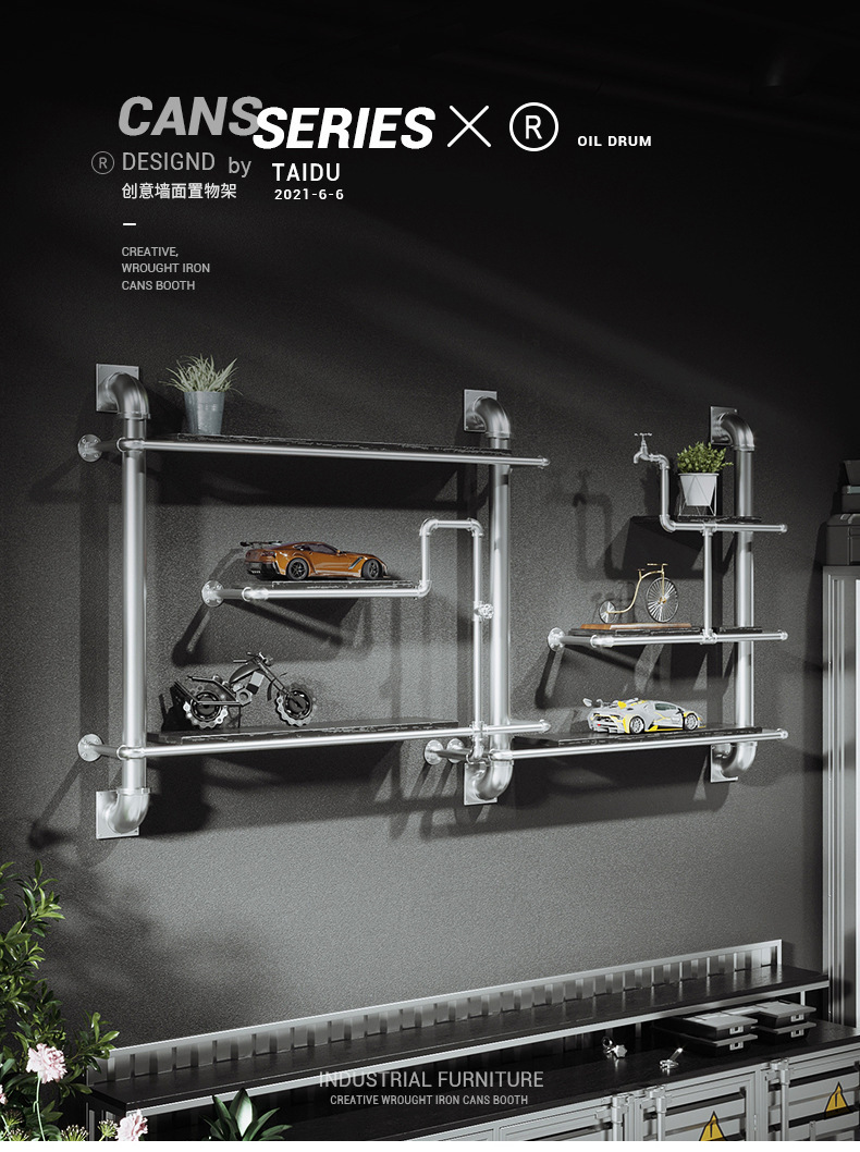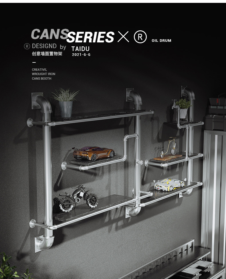 철수관 선반 거실 크리 에이 티브 벽걸이 바 장식 복고풍 산업 스타일 단단한 나무 선반 책장스토어 가기