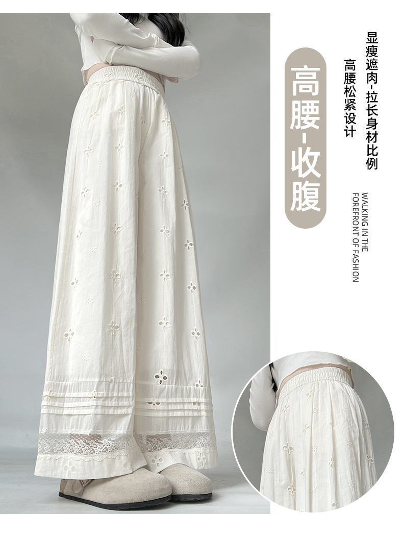 화이트 레이스 할로우 아웃 야마모토 팬츠 여성 여름 얇은 2025 새로운 높은 허리 루즈 캐주얼 스타일 쿨 아이스 실크 바지스토어 가기