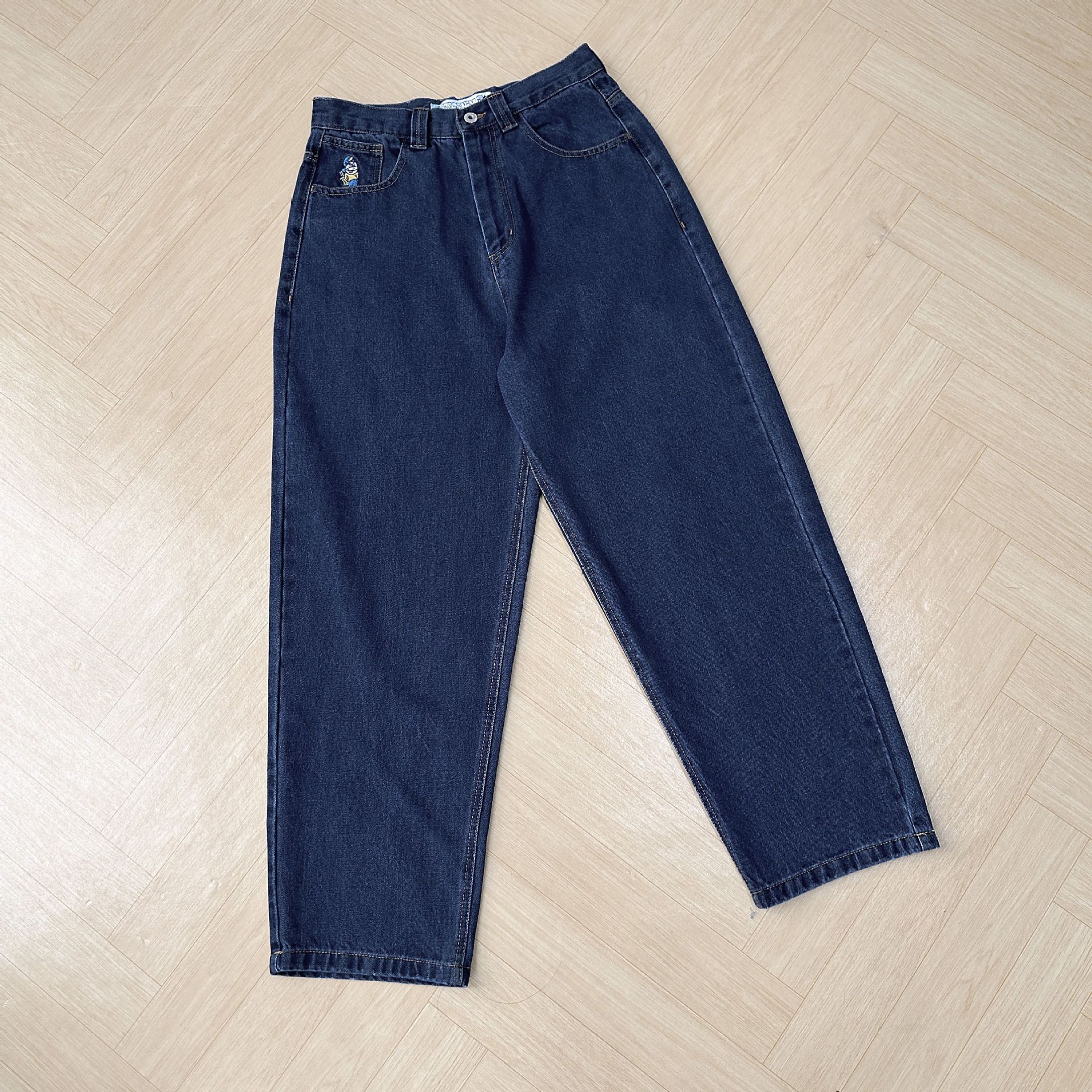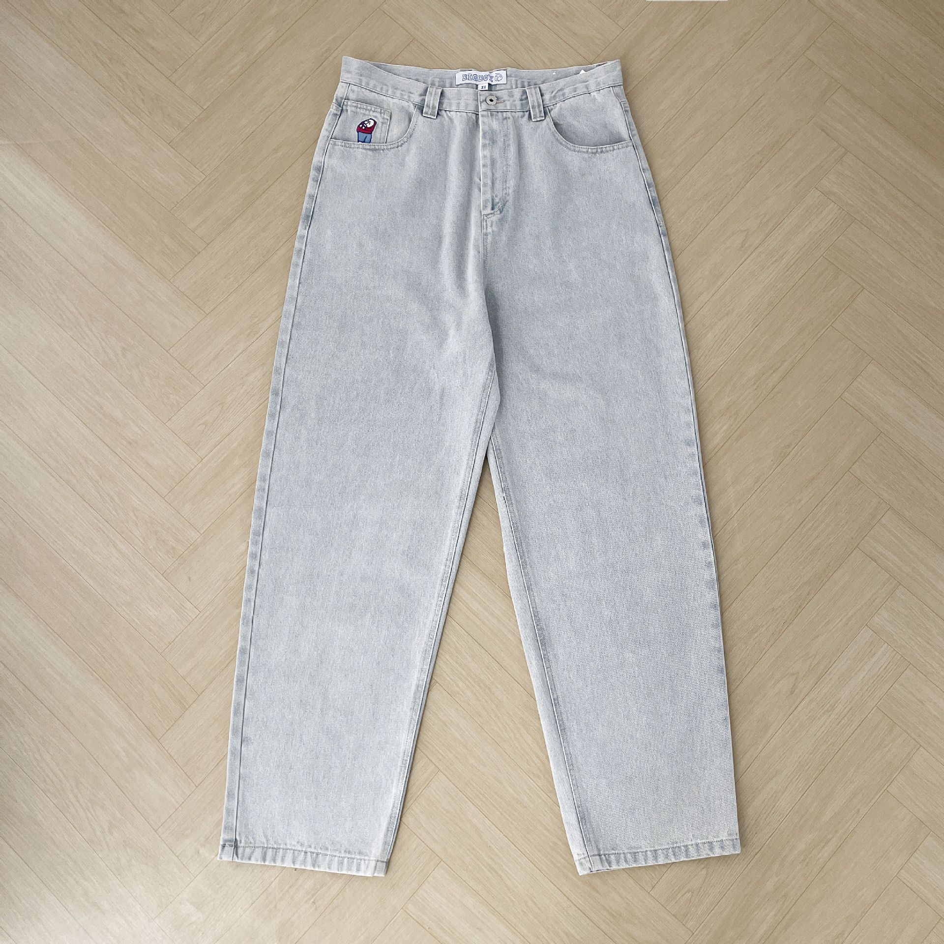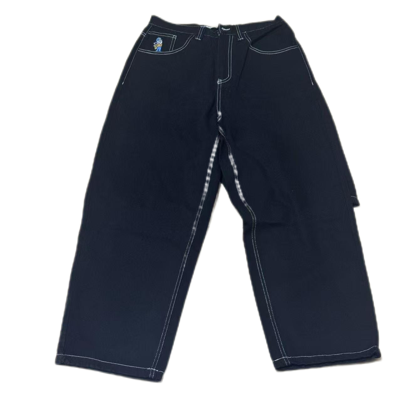 유럽과 미국의 스트리트 빅보이 스케이트 보드 바지 하라주쿠 힙합 만화 패턴 수 놓은 남성과 여성의 느슨한 청바지스토어 가기