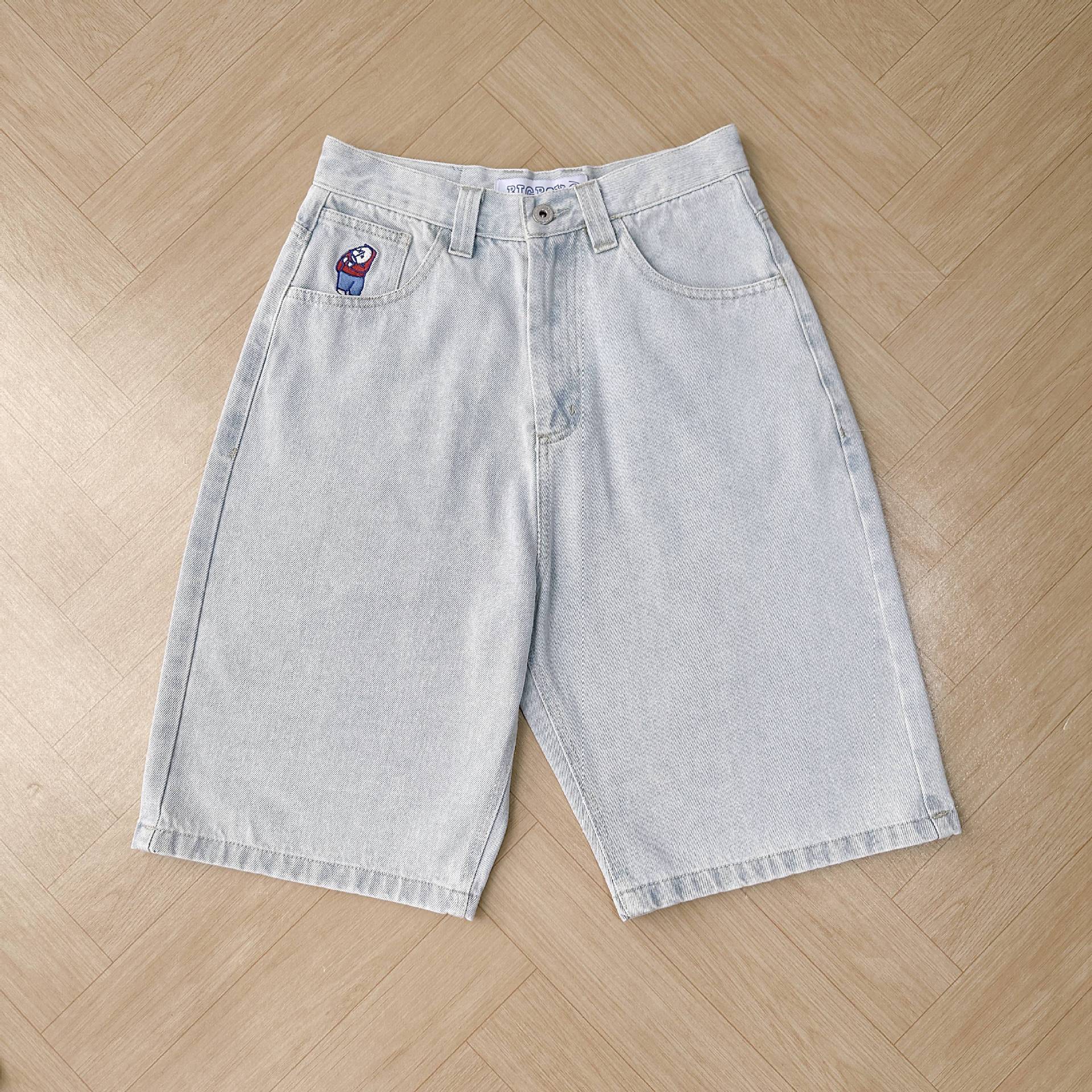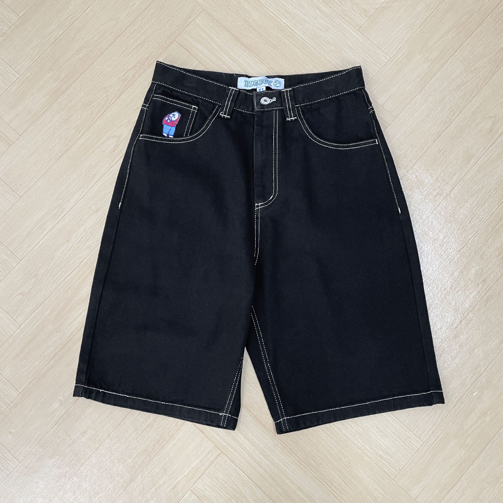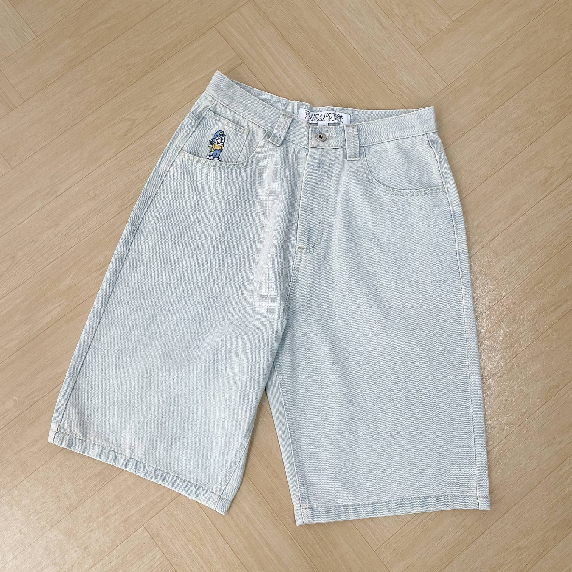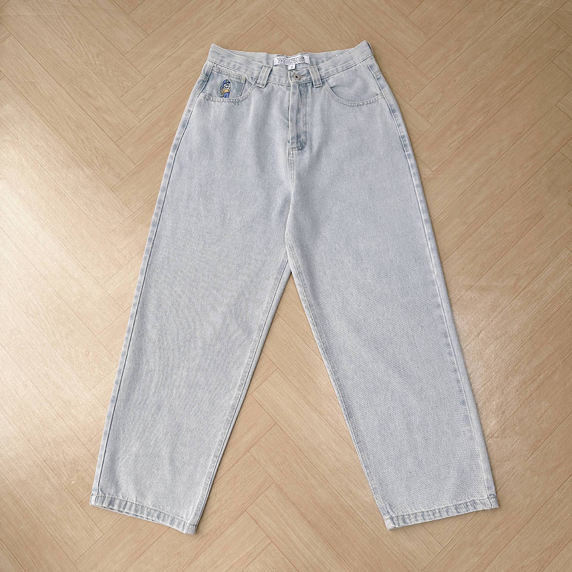 유럽과 미국의 스트리트 빅보이 스케이트 보드 바지 하라주쿠 힙합 만화 패턴 수 놓은 남성과 여성의 느슨한 청바지스토어 가기