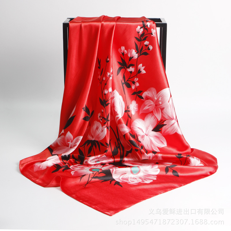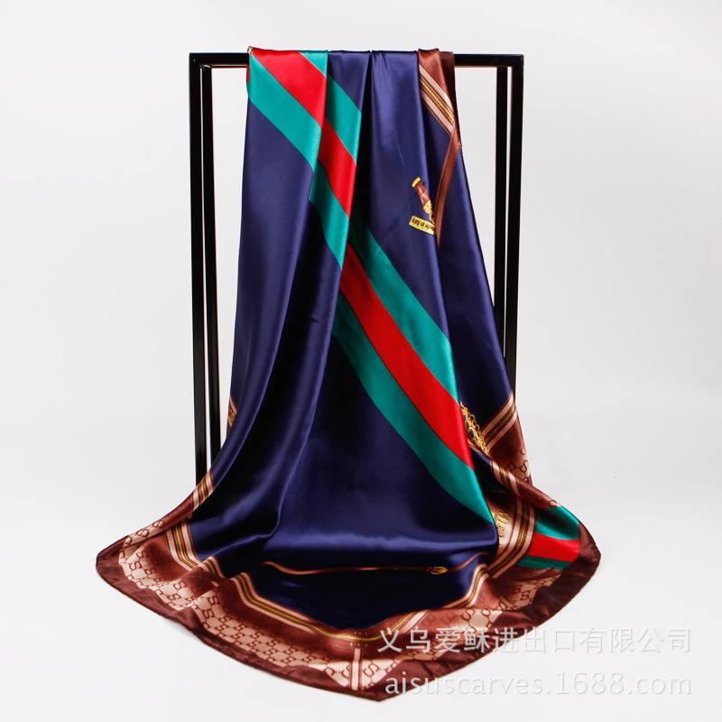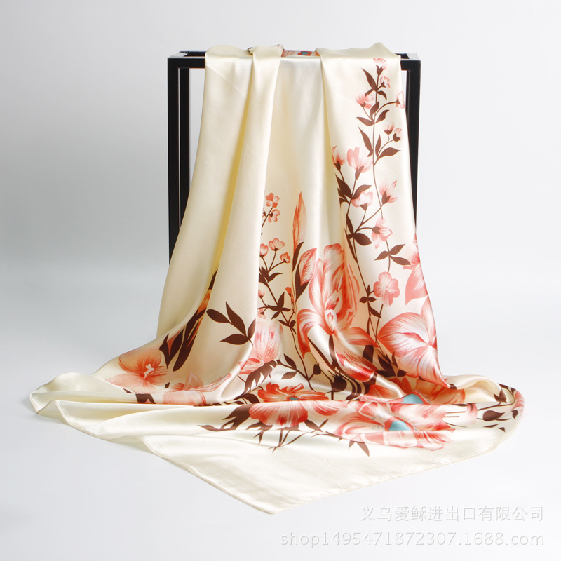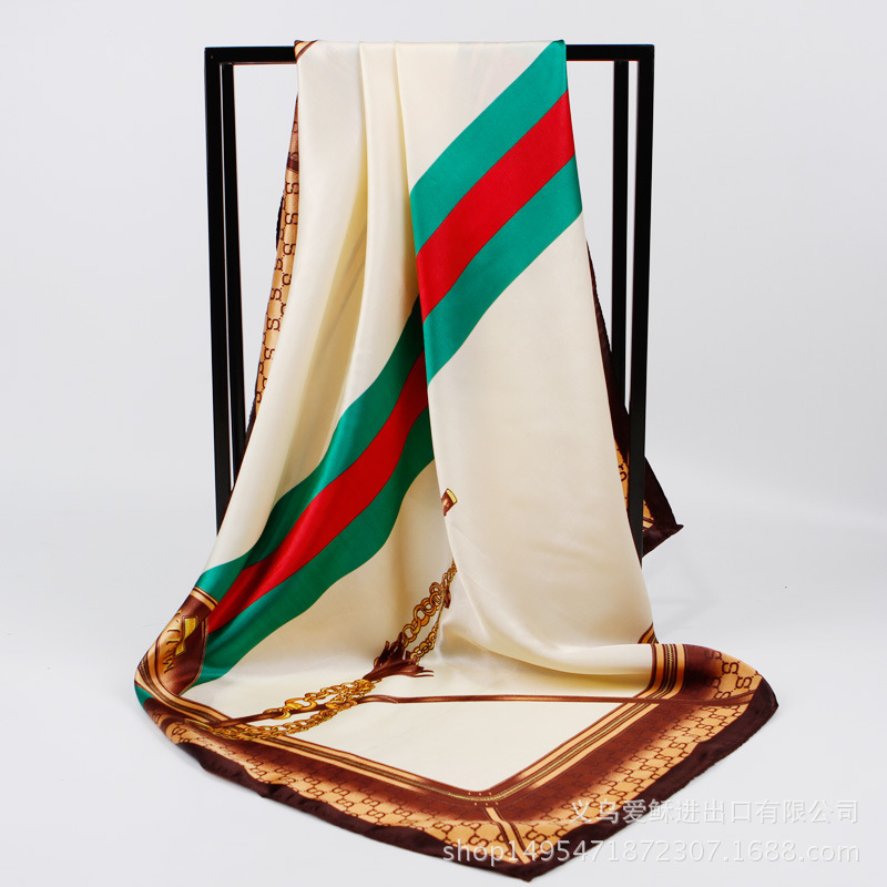 유럽과 미국 실크 스카프 신상 캐슈넛 프린트 인조 실크 여성용 대형 스카프 새틴 리본 스카프스토어 가기