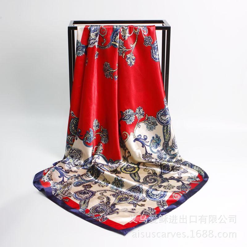 유럽과 미국 실크 스카프 신상 캐슈넛 프린트 인조 실크 여성용 대형 스카프 새틴 리본 스카프