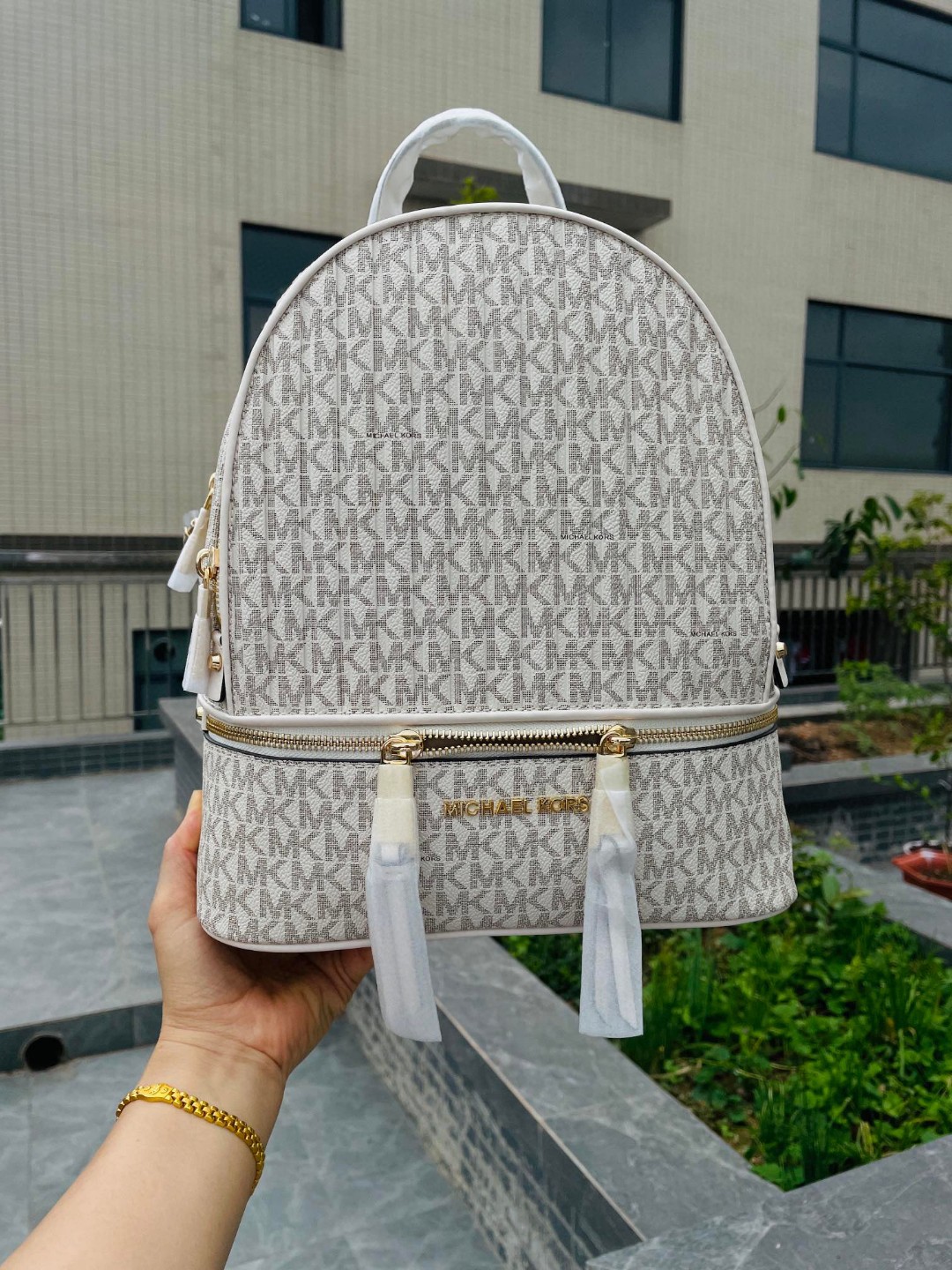 2024 새로운 M 배낭 여행 배낭 Schoolbag 클래식 Cowhide 색상 일치 오래된 꽃 편지 캐주얼 중형 가방